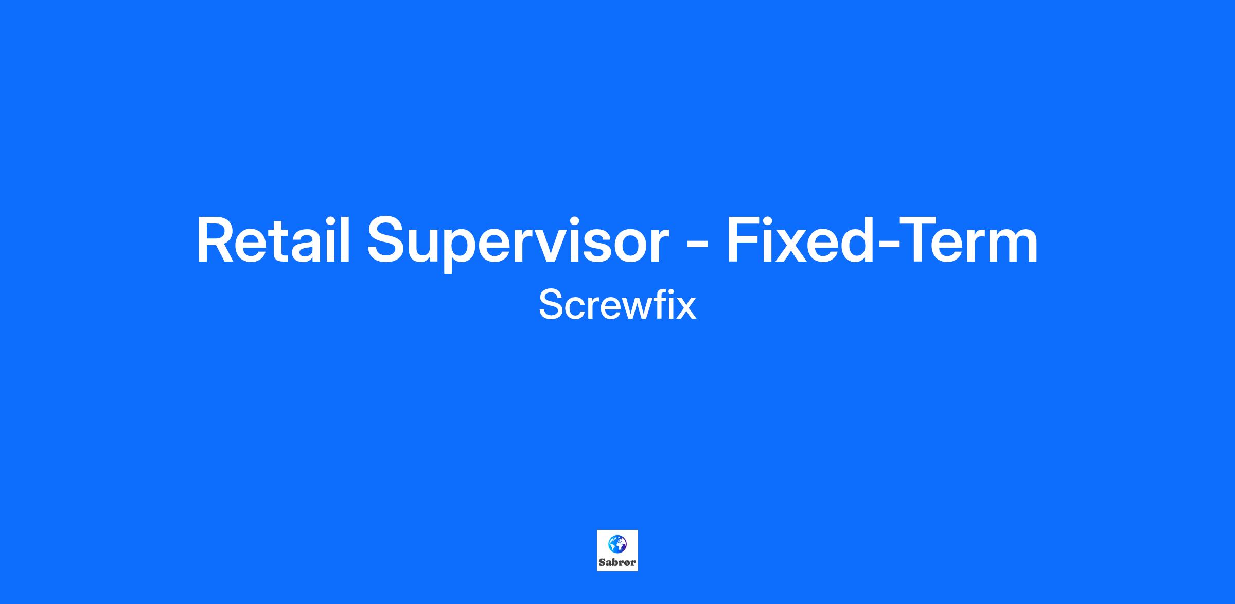 Overview You’ll be a vital part of the team, getting stuck in and leading by example. Whether you’re front-of-house helping customers or in the warehouse keeping our standards high, customers are always at the front of your mind. And with the help of our excellent training programmes and varied shift patterns to support a healthy work life balance, you’ll be on the right track for a promising career with us! This is a fixed-term opportunity for 3 months Opening hours: Monday - Friday (7am to 8pm) Saturday (7am to 6pm) Sunday (9am to 4pm) Responsibilities WHAT’S IT LIKE TO BE A RETAIL SUPERVISOR? Host – you’ll be the team leader, hosting in store, setting an example of what great looks like. You’ll understand what your customers need, guide them to the right products, and make it super easy for them Store standards – you’ll make sure everything runs smoothly from cash reconciliations, to customer queries, audit compliancy and stock management. Part of the team – you’ll join a team who take pride in their store, working together and having lots of fun along the way! Qualifications YOU ARE… An experienced supervisor or duty manager who is used to managing a small team in a fast-paced environment Great at giving amazing customer service, and able to translate that into sales Inquisitive, ever-questioning and ever-improving Passionate about our business Friendly, flexible, reliable, honest and like to work hard! WHAT’S IN IT FOR YOU? Joining Screwfix means joining a growing team – full of support, opportunities, and fun! We offer a competitive salary 28 days annual leave (including an allowance for Bank Holidays). Increasing with length of service, up to a maximum of 33 days annual leave. Award-winning company pension scheme - up to 14% Kingfisher contribution! Life cover 20% discount with Screwfix and B&Q Discounted healthcare Company share save schemes We’ll also help you be the best you can be, with excellent training and ongoing development. To find out more about us, please email careers@screwfix.com for any queries Follow us and find out more on our LinkedIn, Instagram & Twitter pages Apply now! – Upload your CV and complete your application *Our hourly rates may include a location allowance which is reviewed annually and may change. Our policy is to employ the best qualified people and provide equal opportunity for the advancement of employees including promotion and training and not to discriminate against any person because of gender, race, ethnicity, age, sexual orientation, religion, belief or disability. If you require any additional support or adjustments to help you make an application, please contact us at careers@screwfix.com