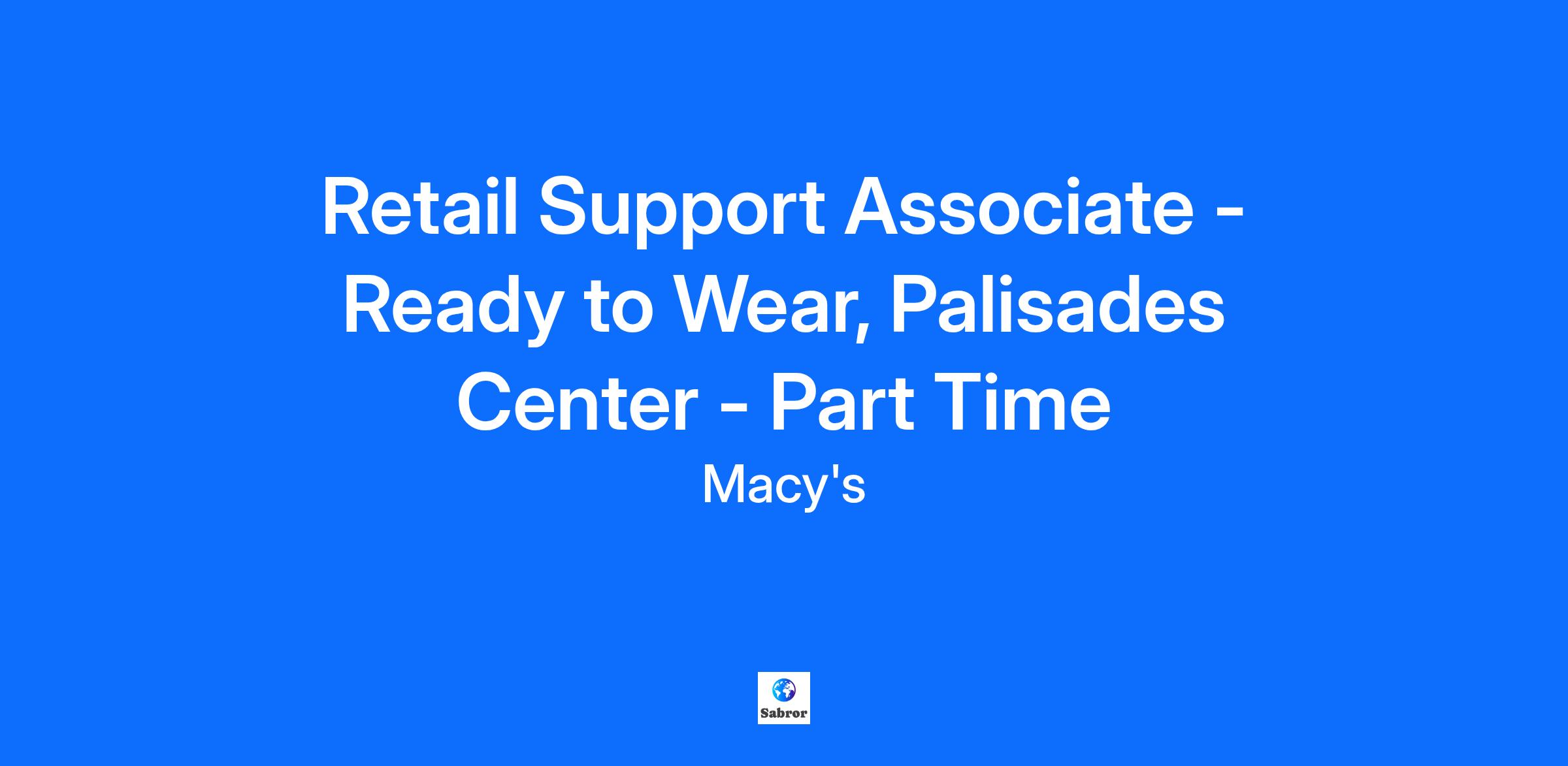 Retail Support Associate - Ready to Wear, Palisades Center - Part Time