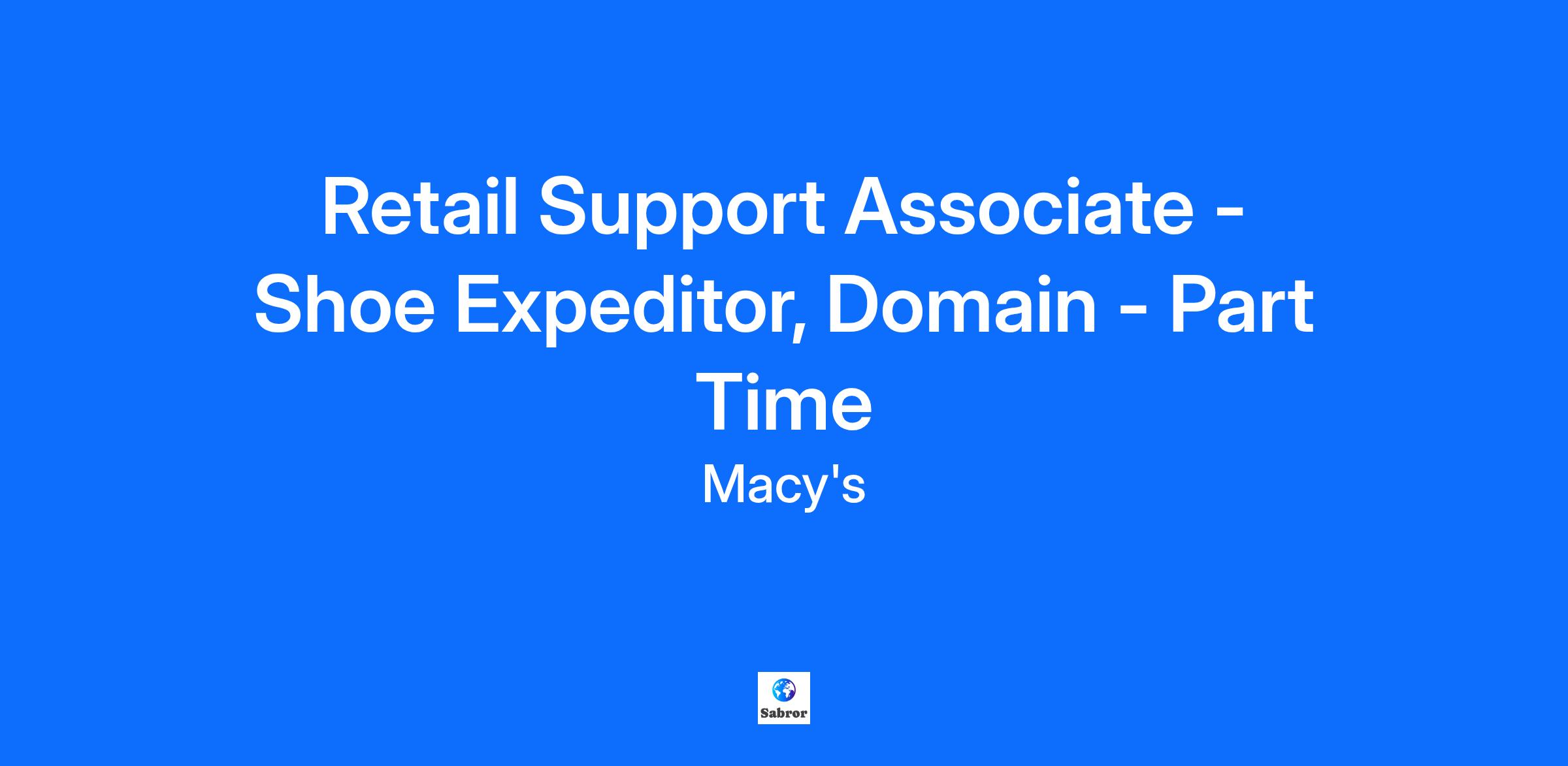Retail Support Associate - Shoe Expeditor, Domain - Part Time
