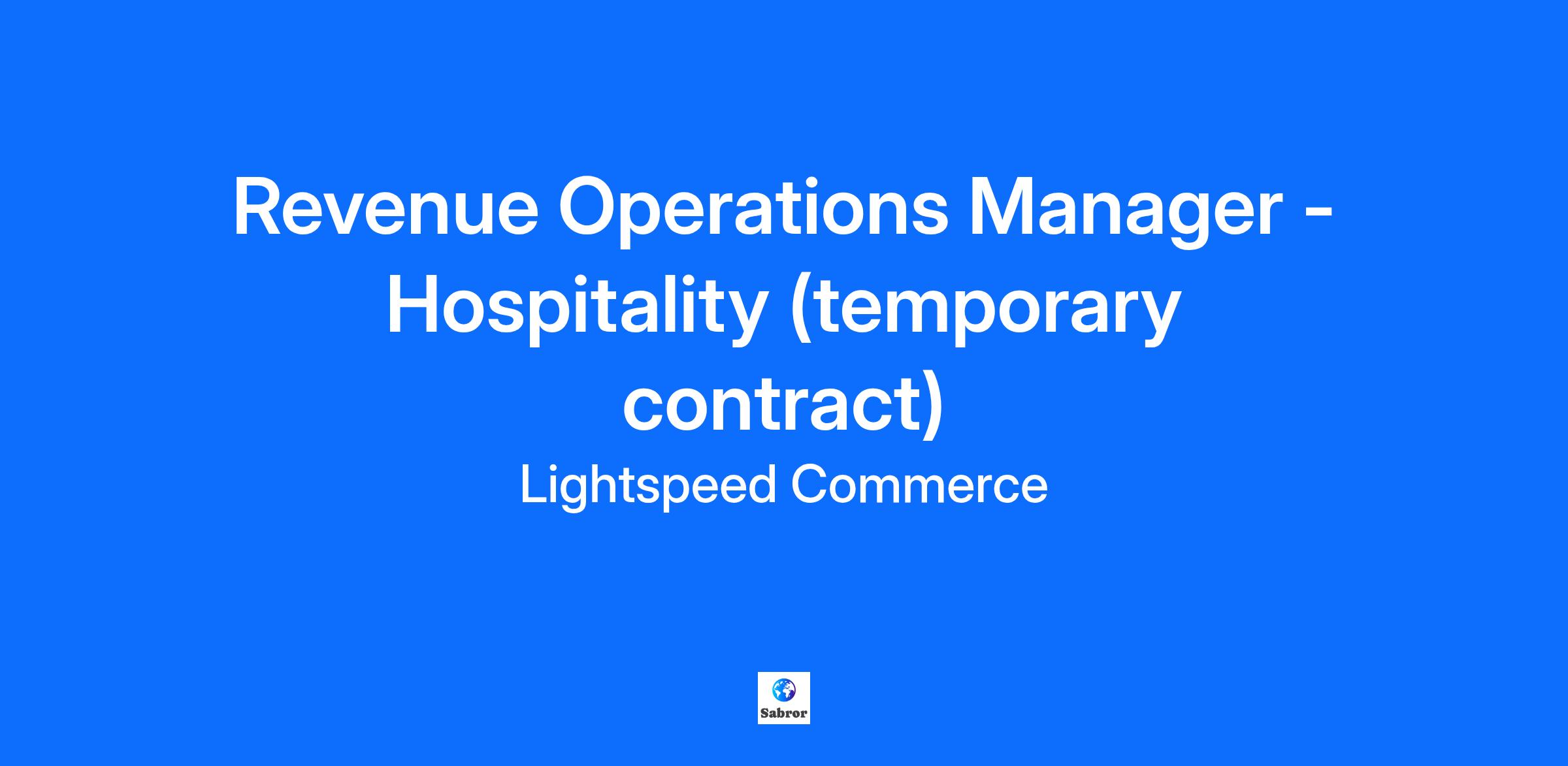 Revenue Operations Manager -Hospitality (temporary contract)