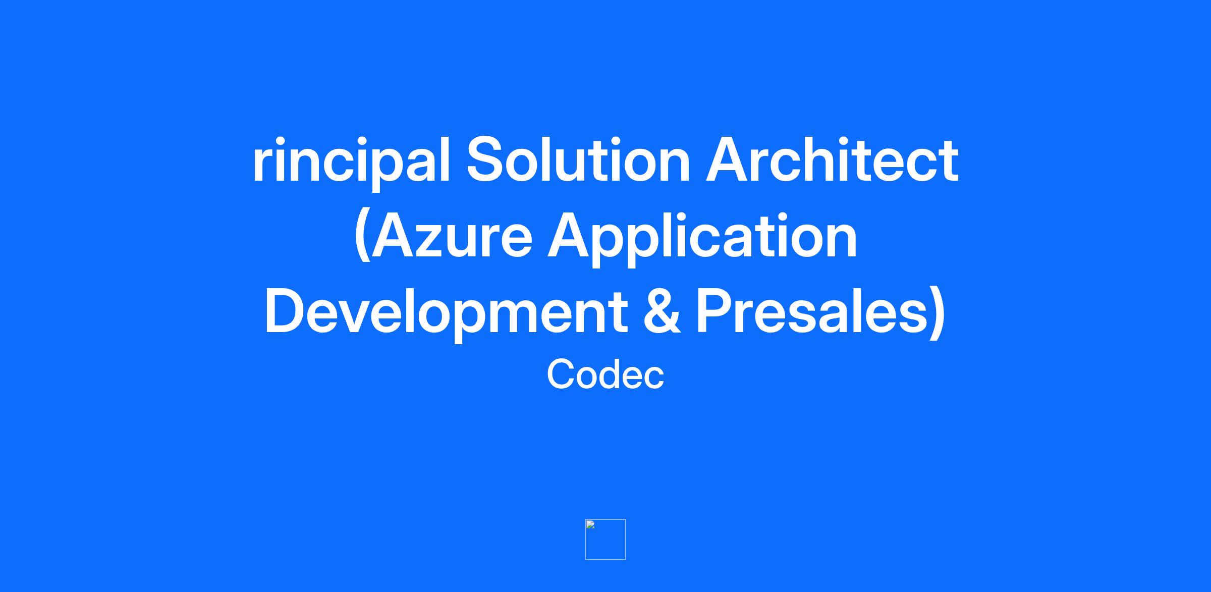 rincipal Solution Architect (Azure Application Development & Presales) Department: Azure Employment Type: Full Time Location: UK Description Job Specification Role Title: Principal Solution Architect (Azure & Commercial Strategy) Location: Dublin, Ireland or UK (Hybrid) Department: Application Modernisation & Enterprise Integration About Codec Codec is an award-winning digital transformation company with big growth ambitions. We are an established full-stack IT consultancy, a local alternative to the Big 4, headquartered in Dublin with offices in Galway, Belfast, London, Poland, and Germany. We are growing rapidly and have crafted a clear vision of the future, developing our own ‘IP’ to complement the Cloud stacks from Microsoft. As we expand our Application Modernisation & Enterprise Integration team, we are moving towards a "product-first" delivery approach to enable us to deliver projects faster and with lower risk due to the repeatability of our offering. The Role We are seeking a commercially minded Principal Solution Architect to lead the technical presales and strategic direction of our "Pro Code" Azure practice. This role sits at the intersection of Sales, Strategy, and Technology. You will not just design the architecture; you will define the commercial approach, write the Statement of Work (SoW), and build the Proof of Concepts (PoC) that win client trust. You will act as the right hand to the Enterprise Lead, taking ownership of commercial proposals and potentially helping us transition from pure services to a repeatable "Accelerator plus Services" based model. Key Responsibilities Key Responsibilities Commercial & Pre-Sales Leadership Technical Proposals: Lead the technical response for large-scale government and enterprise tenders. Produce detailed Statements of Work (SoW) and accurate pricing models for Azure services, ensuring commercial viability. Cost Modelling: Expertly navigate Azure licensing and tier pricing to provide accurate cost-benefit analysis for clients, clearly justifying why specific tiers and services (e.g., Premium vs Standard App Plans) are required. Visionary Architecture: Envisage future-state architectures for enterprise clients, breaking them down into deliverable incremental stages (MVP to Enterprise Scale) that align with client budgets. Innovation & Strategy Rapid Prototyping (PoC): Act as the hands-on technical lead for "Dialogue Sessions" and client workshops. You must be capable of building functional Proof of Concepts (PoCs) in Azure/C# rapidly to demonstrate capability and close deals. IP & Accelerators: Actively identify opportunities within client projects to harvest repeatable code or components. Influence the roadmap for Codec’s proprietary "Accelerator" library to drive future delivery efficiencies. Stakeholder Management Engage in regular discussions with senior stakeholders (technical and non-technical) to provide updates, gather feedback, and adjust strategic deliverables as necessary. Work closely with customer teams to understand their needs and ensure the proposed solution aligns with their expectations and business processes. Skills, Knowledge and Expertise Strategic Pre-Sales: Proven experience writing detailed proposals, SoWs, and presenting technical vision to non-technical boards or senior stakeholders. Azure Architecture: Deep understanding of Azure PaaS/Serverless architectures (Web Apps, Functions, Service Bus, Dataverse) and their associated costs. Hands-On Capability: Ability to "get your hands dirty" coding MVPs/PoCs (C#, .NET, Azure) when required. Product Mindset: Experience in productising services or identifying reusable IP in a consulting environment. Communication: Excellent English language communication skills, written and verbal, with the ability to articulate complex technical concepts to commercial audiences. Location & Eligibility Hybrid Working: Codec supports hybrid working; however, on-site working will be required where expected by customers, and attendance at Codec offices is expected regularly. Right to Work: Candidates must be currently located in Ireland or the UK with existing Right to Work approval.