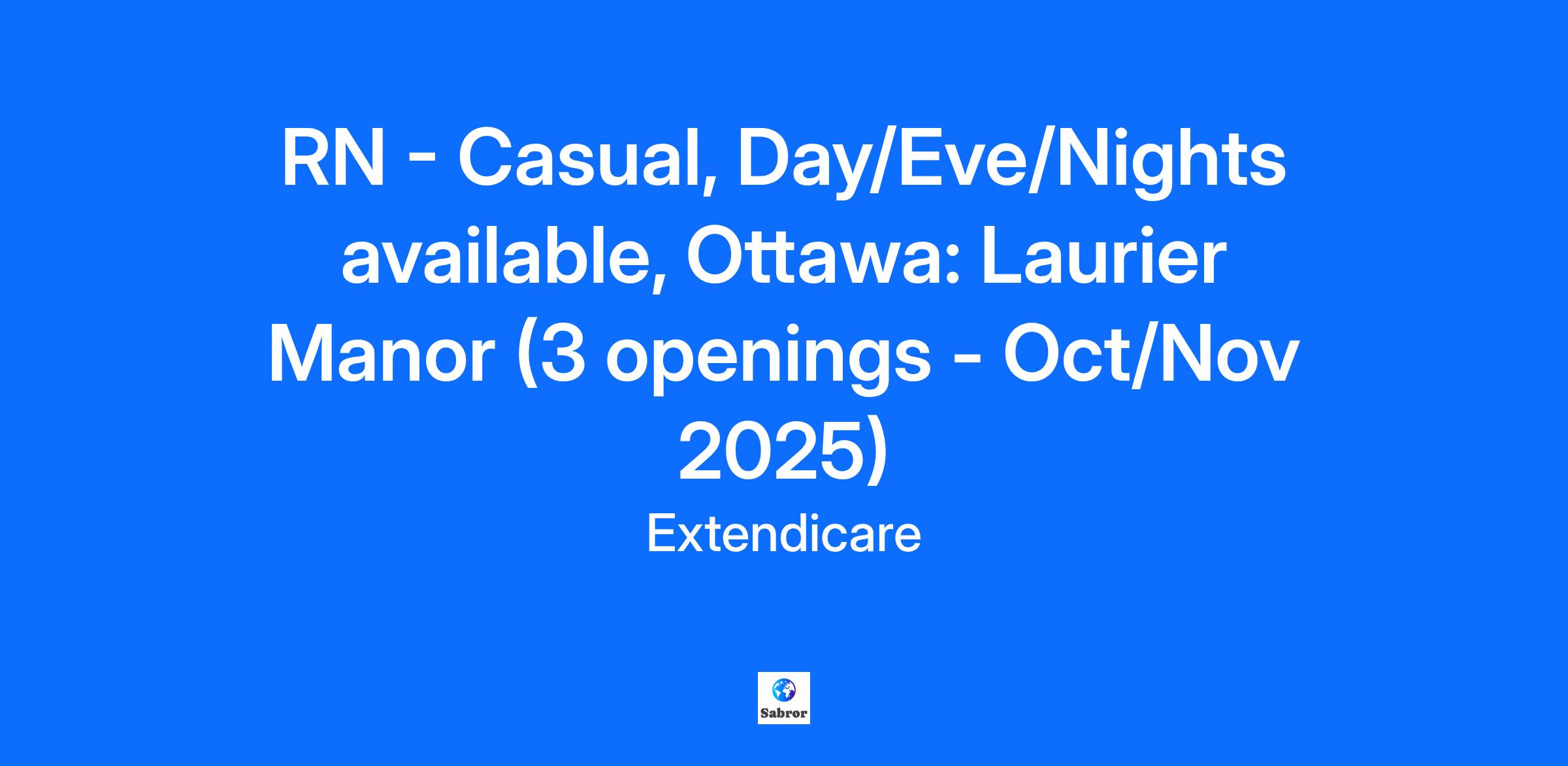 Job Description REGISTERED NURSE At Extendicare, we believe that working as a team and celebrating achievements creates an environment that allows us to reach our potential. As a valued member of our RN team, you will provide care to residents in accordance with the standards of practice and offer leadership and guidance to the nursing and personal care staff. This position is for our 242-bed Long-Term Care Home, Laurier Manor, located in Ottawa, Ontario on 1715 Montreal Rd Available opportunities include: Casual position, Days (6:30-14:30), Evenings (14:30-22:30) and Nights (22:30-6:30) What you’ll be doing Liaise with interdisciplinary team and care providers to develop, implement, review and evaluate resident complex care plans including education and support. Provide leadership to nursing and personal care staff by planning, directing, supervising and evaluating their work. What you bring Current registration with provincial College of Nurses as a Registered Nurse (RN) What you’ll get Continuous mentorship, support for life-long learning and growth opportunities Opportunities for advancement and career growth within the organization A rewarding and meaningful work experience where you can enrich your life and the lives of others through your work. Employee Family Assistance Program. Robust benefits package. Extendicare is a leading provider of care and services for seniors throughout Canada. Through our network of over 115 operated senior care and living centres, as well as our home health care operations, we are committed to delivering care throughout the health care continuum to meet the needs of a growing seniors’ population in Canada. Our qualified and highly trained workforce of 23,700 individuals are united by a dedication to quality care and by our vision of being the best provider of senior care and services in Canada. Time Type: Part time When you choose to build your career with Extendicare, you’re joining a team dedicated to making a difference. By focusing our energy on enriching the lives of our residents every day, we transform both the quality of their lives and the quality of our own work experiences. If you have a passion for caring, turn it into a rewarding career with Extendicare! Extendicare and affiliated organizations including our partner homes in Extendicare Assist, accommodate the needs of job applicants throughout its recruitment and selection processes upon request. Extendicare is a leading provider of care and services for seniors across Canada. We deliver quality care to meet the needs of a growing seniors’ population. We also provide management and consulting support through a range of services, including recruitment and building strong, qualified teams, to a network of independently owned long-term care and retirement homes. Our Mission “Helping People Live Better.” We help our residents and clients live better by promoting quality of life. We create remarkable moments through highly engaged and motivated team members. Stakeholders know this because we continuously measure, improve and publicly share our performance. Our Vision Our vision is to be the best senior care and services company in Canada. Our Values At Extendicare, we value our customers and our team who cares for them. We are committed to treating them with dignity and respect in an atmosphere of compassion. As health care professionals, we take pride in being responsive to the needs of those who rely on us. Customer Satisfaction. We strive to provide care and services to our customers which exceed their expectations. Excellence. We believe aspiring to excellence leads to continuous quality improvement in our provision of care to residents. Respect. We value each employee, encourage equal opportunity for growth and recognize achievement. Integrity. We believe in honesty and fairness in our relationships with others. Accountability. We believe we are accountable for the quality of services we provide to our customers. Communication. We listen to each other and foster open and honest communication. Teamwork. We believe that working as a team creates an environment that allows us to reach our potential. Environment. We believe that environmental issues should be integrated into business decisions that promote environmental protection, preservation, safety and a homelike atmosphere.