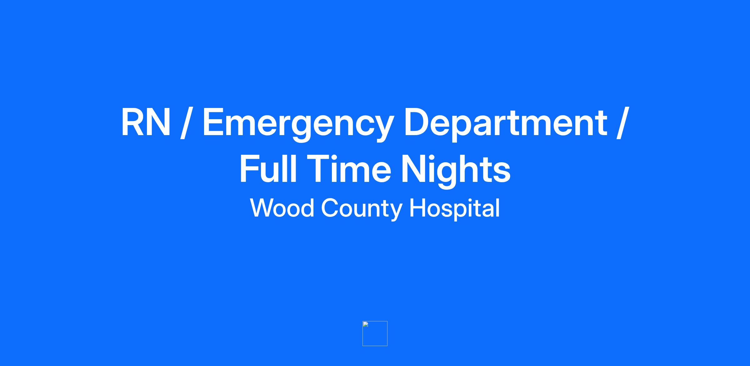 Elevate your career at Wood County Hospital, where you're not just a number – you're a vital part of a team making a real difference. RN / Emergency Department / Full Time Nights Provides personal care and professional excellence through activities of evidenced based practice in areas such as assessment, collaboration, patient education, and responsiveness under the scope of practice as outlined by Ohio State Board of Nursing. Registered Nurse is an onsite position. Job Duties: Assess, plan, implement, and evaluate nursing care provided to patients. Maintain accurate, timely, detailed reports and records. Individualize care based on patient values, preferences, and needs. Collaborate and advocate with other health care providers to provide best outcome for patients. Educate patient and family from admission to discharge considering patient and family comprehension and style of learning. Prepare, prevent, protect and respond to support our culture of safety. Works hours per week in accordance with offer letter or per attributes of position at transfer request. May be expected to work longer hours as necessary. Other duties as assigned. Requirements Education: Diploma Nurse or ADN from an accredited school of nursing License: Registered Nurse in the State of Ohio by time of hire Certification: BLS and ACLS within 90 days of hire PALS required within 90 days of hire (ED, PACU, Infusion) NRP within 90 days of hire (OB) Benefit Summary: Join our team, and you’ll have access to a cutting-edge facility with state-of-the-art technology. You’ll also interact with some of the region's top notch healthcare professionals. You’ll find plenty of opportunities to grow and advance your career. We’ll also reward your hard work with: Great health, dental and vision plans Competitive wages Prescription drug coverage Flexible spending accounts Life insurance w/AD&D Generous short term and long-term disability plans Employer-matched 403(b) Employer sponsored cash balance pension plan. Vacation and Holiday time. Generous tuition reimbursement And a lot more!