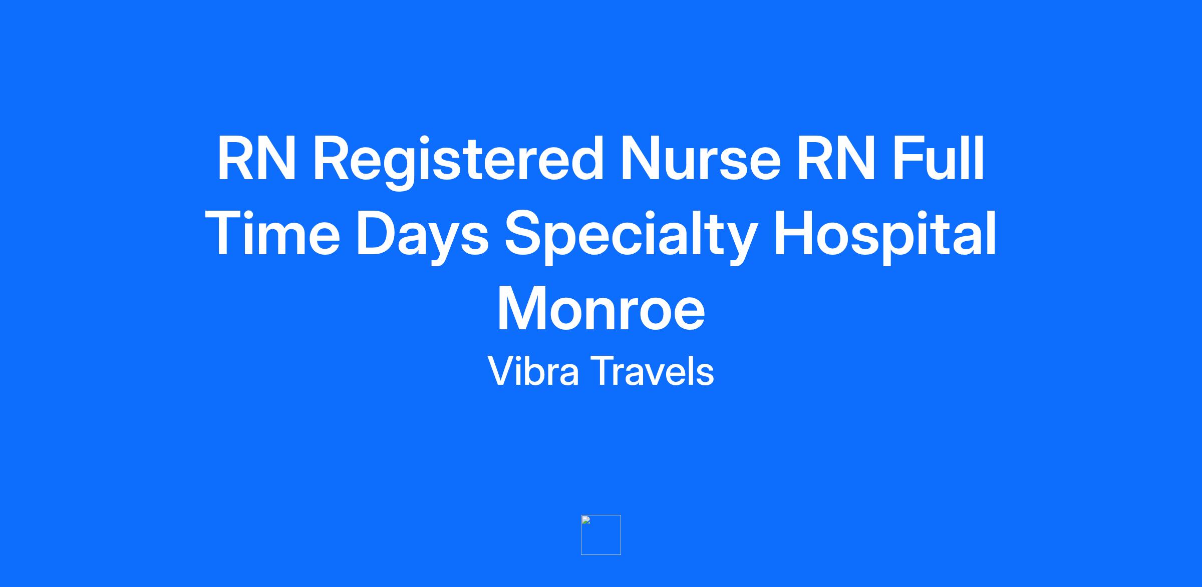 RN Registered Nurse RN Full Time Days Specialty Hospital Monroe