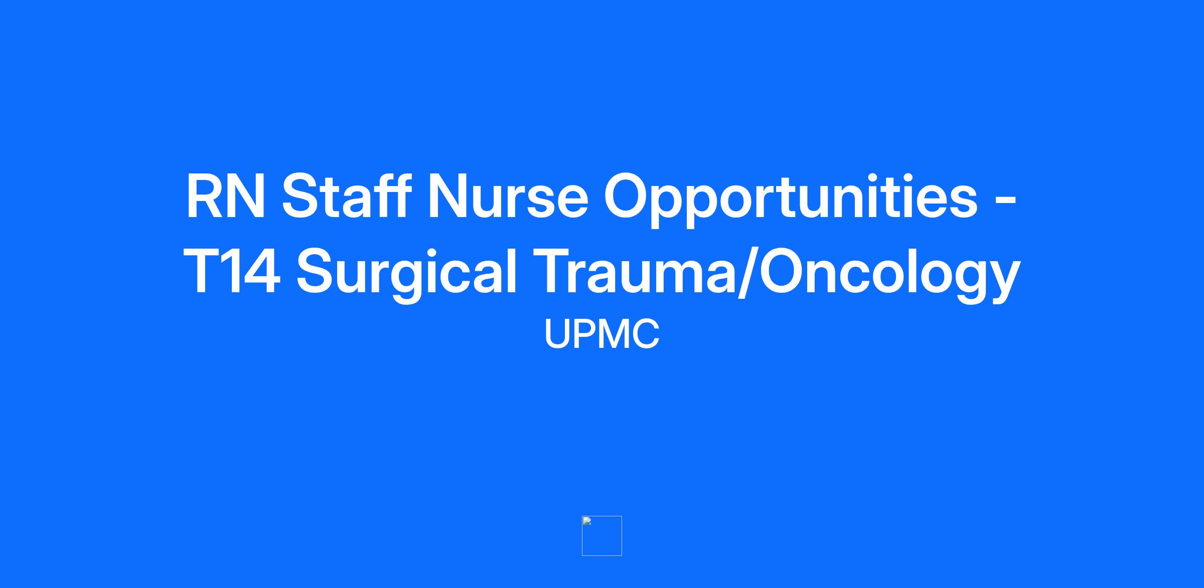 Are you a Registered Nurse ready to take the next step in your career, or a new nurse eager to thrive in a supportive environment? UPMC Altoona is seeking a Graduate Nurse or Registered Nurse to join our T14 Surgical Trauma/Medical Oncology & Palliative Care team! About T14 - Surgical Trauma/Medical Oncology & Palliative Care Tower 14 front: Surgical/Trauma is a fast paced, 23-bed unit specializing in the care of post-surgical adults and low acuity trauma patients. Our unit specializes in caring for patients who have undergone a wide range of abdominal surgeries, as well as general medical cases such as sepsis, renal insufficiency, respiratory conditions, pancreatitis, and a variety acute and chronic illnesses. Tower 14 is also able to provide medical telemetry monitoring for those patients who require this type of care. Tower 14 back: Medical Oncology & Palliative Care is an 18-bed medical telemetry unit that provides specialized care to both oncology and palliative care patients. There are 5 palliative care suites to accommodate our patients with palliative care needs. Nurses are trained and certified to administer chemotherapy and provide care to patients who may require telemetry monitoring, require neutropenic precautions, and numerous other conditions. Each plan of care for our patients is tailored to meet each of their unique care needs. Most positions work a rotating day/night schedule, three 12-hour shifts per week; however, we offer flexible opportunities including night programs, weekend programs, and part‑time positions. We strive to provide options that meet the needs of every nurse. UPMC is committed to investing in nurses like you – financially, personally, and professionally – starting on day one of your career. From tackling student loans to advancing your career later in life, UPMC is the partner you need to succeed and thrive in your nursing career. Here’s how we support our nurses: Newly competitive wages: $31.50 (BSN) $30.00 (non-BSN) Shift differential: $2.00 Title and salary will be determined based upon education and nursing experience. Generous Sign-On Bonus of up to $20,000 $20,000 sign-on bonus available for nurses with 1 or more years of experience. $15,000 sign-on bonus available for nurses with less than 1 year of experience. Candidates hired into a sign-on bonus eligible role will be asked to make a two-year work commitment. UPMC’s Monthly Loan Repayment Program: If you are eligible for the $15,000 sign-on bonus, you may also be eligible to receive an additional $15,000 student loan repayment bonus, paid out over 3 years An incomparable benefit package (found to be 20%25 higher in value than other healthcare employers in our market!) Up to five and a half weeks of Paid Time Off annually, plus seven paid holidays each year Dedicated Professional Development Program, allowing you to achieve your highest potential while rewarding you for your experience and advanced education Tuition reimbursement of up to $6,000 per academic year at any accredited institution, available to employees and their dependents (plus discounts for UPMC employees including no cost RN-BSN/MSN options!) Future Graduates & experienced Registered Nurses are encouraged to apply – future GNs can apply up to 1 year in advance of graduation. Join us in a role where your expertise makes a difference every day, and where your career can flourish in a culture of excellence, compassion, and innovation! Responsibilities: Patient Care Provide Direct Care: Use nursing protocols and standards to perform and document procedures safely and accurately. Administer medications and IV therapy following policy. Assess and Reassess: Evaluate and document patient and family needs. Reassess patients every eight hours or as needed. Plan Care: Involve patients and families in creating care plans. Prioritize needs, conduct care conferences, and maintain up-to-date care plans. Coordinate with community agencies and other professionals. Coordination and Communication Engage in Team Discussions: Work with medical staff and other professionals to discuss and develop patient care plans. Utilize Systems: Use Bed Management System, Alpha, CPOE, and other relevant computer systems efficiently. Education and Leadership Teach and Educate: Initiate health teaching for patients and families based on their needs. Contribute to the education of staff and students. Consult and Lead: Offer guidance and support to other healthcare team members. Demonstrate professionalism in all interactions. Safety and Compliance Follow Precautions: Adhere to universal precautions and occupational exposure policies. Identify and address potential problems and environmental factors affecting patient care. Maintain Competency: Complete annual competency validation and stay proficient in point-of-care testing as per lab criteria. Education and Formal Training Required: Must hold a current license to practice nursing in the State of Pennsylvania. Must satisfactorily complete the Nursing Department's orientation program and probationary period. Must complete NIHSS education prior to end of orientation period, if required. When assigned to STICU, ICU, T14-Surgical, T11, 5E, SPCU: must maintain six stroke and six trauma competencies per year; must attend Trauma Symposium yearly. Experience Required: None Licensure, Certifications, and Clearances: Basic Life Support (BLS) OR Cardiopulmonary Resuscitation (CPR) required based on AHA standards that include both a didactic and skills demonstration component within 30 days of hire Registered Nurse (RN) Act 34 *Current licensure either in the state where the facility is located or, if the facility is in a state covered by the multistate Nursing Licensure Compact (NLC) agreement, a multistate license issued by a participating NLC state. Hires and current employees working on an out-of-state NLC license who later change their residency to the state where the facility is also located will have 60 da