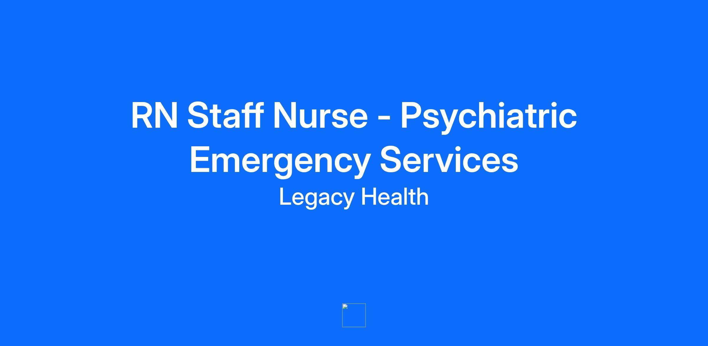 Overview The Legacy nursing philosophy focuses on patients and their families. Our nurses embody this philosophy in everything they do, as advocates, communicators, problem-solvers and caregivers. Their expertise is sought after and respected by our health care team. In short, they are the face of wellness at Legacy. Does this sound like an environment in which you could thrive? If so, we invite you to consider this opportunity. Unity is founded on a mission of trauma-informed care and destigmatizing behavioral health diagnoses. Unity nurses strive to innovate and elevate behavioral health nursing through holistic treatment of our patients. Unity nurses apply their behavioral health specialty through high-level critical thinking, individualized patient care plans, early interventions, specialized assessments, and de-escalation and motivational interviewing techniques. Unity nurses maintain their physical health skills as part of our holistic treatment including attending to physical health needs such as assessment, wound care, and phlebotomy. We welcome nurses from all backgrounds to join our team who share our values of inclusion, kindness, and excellence and a heart for the behavioral health population! As Oregon’s first and only Psychiatric Emergency Services (PES) we provide emergent care to people experiencing a behavioral health crisis. For our patients, the PES is often the first step to recovery and treatment. Our patients are highly acute and often require varied and intensive interventions to start stabilization. Integral to emergency services with 24/7 nursing, care management, and provider coverage, the nursing work is fast-paced and dynamic. Our nurses thrive in working with our community’s most vulnerable individuals. Responsibilities Responsible for patient care within an assigned department/unit and participates as a member of the health care team in cooperation with and under the direction of the clinical manager or designee as defined by the relevant Standards and Scope of Practice for the Registered Nurse. The RN Staff Nurse assesses, analyzes, plans, implements and evaluates patient care following established patient care standards for Legacy Health System including those for patient assessment and transfer. Qualifications Education: As required by licensure. BSN or degree in progress strongly preferred. BSN may be required for specific assignments; experienced RNs without a BSN may be hired based on clinical experience with approval of the site CNO. Experience: One-year registered nursing experience or completion of either the Legacy Health RN Residency program or a nursing program that is equivalent in content, curriculum and duration. Additional clinical experience requirements may vary dependent upon the specific department in which the position is utilized. Knowledge/Skills: Demonstrated ability of positive interpersonal and communication skills with colleagues, patients, families, physicians and the community. Keyboard skills and ability to navigate electronic systems applicable to job functions. Licensure Current applicable state RN license required. AHA BLS for Healthcare Providers. Pay Range USD $54.37 - USD $81.21 /Hr. Our Commitment to Health and Equal Opportunity Our Legacy is good for health for Our People, Our Patients, Our Communities, Our World. Above all, we will do the right thing. If you are passionate about our mission and believe you can contribute to our team, we encourage you to apply—even if you don't meet every qualification listed. We are committed to fostering an inclusive environment where everyone can grow and succeed. Legacy Health is an equal opportunity employer and prohibits unlawful discrimination and harassment of any type and affords equal employment opportunities to employees and applicants without regard to race, color, religion or creed, citizenship status, sex, sexual orientation, gender identity, pregnancy, age, national origin, disability status, genetic information, veteran status, or any other characteristic protected by law. To learn more about our employee benefits click here: www.legacyhealth.org/For-Health-Professionals/careers/benefiting-you