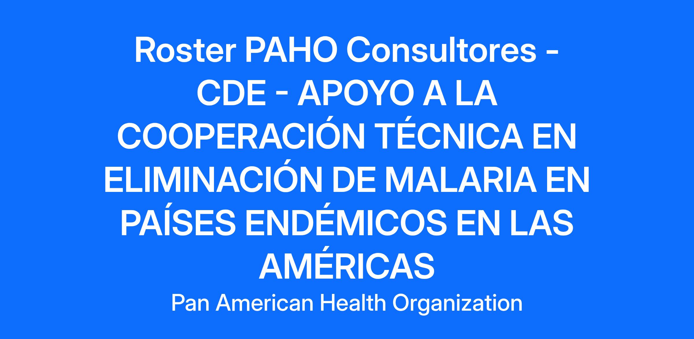 OBJECTIVE OF THE OFFICE/DEPARTMENT This is a requisition for employment at the Pan American Health Organization (PAHO)/Regional Office of the World Health Organization (WHO) Contractual Agreement: Non-Staff - International PAHO Consultant Job Posting: December 11, 2025 Closing Date: December 30, 2025, 11:59 PM Primary Location: Organization: CDE Communicable Diseases Prevention, Control, and Elimination Schedule: Part time PURPOSE OF CONSULTANCY ROSTER DE CONSULTORES Apoyar la cooperación técnica de la OPS para implementar el Plan de Acción para la eliminación de la malaria 2026-2030 Departamento: CDE – Prevención, Control y Eliminación de Enfermedades Transmisibles Banda B (tarifa diaria mínima: $258 Min. Modalidad: Remoto – Tiempo completo o tiempo parcial This requisition is for a consultancy at the Pan American Health Organization (PAHO)/Regional Office of the World Health Organization (WHO). OBJETIVO DEL DEPARTAMENTO El Departamento de Prevención, Control y Eliminación de Enfermedades Transmisibles (CDE) promueve, coordina y ejecuta actividades de cooperación técnica destinadas a la vigilancia, prevención, control, eliminación y/o reducción de enfermedades transmisibles, zoonosis y amenazas ambientales para la salud que sean técnicamente sólidas y adecuadas al contexto político y sociocultural en el que se implementan. Se esfuerza por lograr un impacto sostenible en la salud a través de la orientación normativa, la promoción de la implementación de intervenciones basadas en la evidencia, el fomento de alianzas que fortalezcan la capacidad nacional, la mejora de la eficacia de la colaboración entre países y la facilitación de los procesos de formulación de políticas y toma de decisiones. ANTECEDENTES Desde 2022, el número de casos de malaria en las Américas parece haberse estabilizado en alrededor de 500 000 casos al año, con una tendencia ascendente. El 88 % de los casos se registran en Sudamérica, donde es necesario realizar los cambios necesarios para eliminar la malaria. A principios de 2025, la mayor carga de malaria en la Región se concentrará en las poblaciones indígenas y en las zonas de minería de oro de la cuenca Amazónica y la costa pacífica colombiana; también cabe destacar el resurgimiento de la enfermedad en Haití y Panamá. A pesar de estos desafíos regionales y del difícil contexto de la respuesta mundial a la malaria, la OPS considera que el período 2026-2030 puede ser una fase de transformación en la lucha contra la enfermedad en la Región, marcada por la introducción de innovaciones, cambios estratégicos y alianzas enmarcadas en los compromisos que los Estados Miembros están asumiendo para la eliminación de las enfermedades transmisibles. Bajo el paradigma de que la eliminación de la malaria depende de la eliminación del reservorio humano del parásito, la OPS ha formulado un nuevo Plan de Acción 2026-2030 en el que el principal elemento de cambio se centra en acciones políticas y estratégicas, incluyendo nuevas alianzas con las comunidades para que el diagnóstico y el tratamiento sean accesibles, sin barreras, a todas las poblaciones afectadas. Con la incorporación de innovaciones para reducir los portadores de P. vivax, la mejora de la comunicación y el uso de la información a nivel local, y las intervenciones colectivas específicas, la OPS afirma que la eliminación en las Américas es factible y que se pueden esperar avances significativos para 2030. La implementación del Plan de Acción 2026-2030 implica una fase inicial de trabajo preliminar mediante la promoción y el debate de cambios estratégicos con los países. Durante 2026, la OPS tiene previsto apoyar a los países en la adopción de cambios estratégicos y operativos, así como en misiones sobre el terreno para respaldar la respuesta inmediata a los focos prioritarios y ayudar a incorporar los cambios promovidos por el Plan. En este contexto, la OPS tiene previsto contratar a expertos en malaria con experiencia en operaciones sobre el terreno y en la gestión de estrategias nacionales. OBJETIVO Constituir un roster de consultores de expertos en malaria con el perfil profesional y la experiencia necesaria para apoyar procesos nacionales y locales de adopción de mejoras de estrategias y políticas en eliminación de la malaria promovidas en el Plan de Acción para la eliminación de la malaria 2026-2030 de la Organización Panamericana de la Salud. DESCRIPTION OF DUTIES: DESCRIPCIÓN DE LAS RESPONSABILIDADES DEL CONSULTOR Las responsabilidades de esta consultoría cubren todas las líneas de acción de la estrategia de eliminación promovida por la OPS: i) expansión del acceso a diagnóstico y tratamiento (D&T), ii) vigilancia como intervención, iii) intervenciones colectivas de quimioprevención y control vectorial y iv) los elementos de gobernanza y alianzas que son clave para la eliminación. El contenido preciso de la cooperación está dictado por los marcos técnicos de la OPS en estos temas y la estructura de actividades y tareas del Plan de Acción para la eliminación de la Malaria 2026-2030. En términos de los procesos de cooperación técnica las actividades de cooperación en este campo a nivel de país o en el ámbito de trabajo con múltiples países en contextos subregionales, se resumen en los siguientes procesos, los cuales son parte integral de las tareas a cargo en estas consultorías: Planificación y coordinación estratégica: apoyo a los Ministerios de Salud en la discusión y elaboración de hojas de ruta y planificación operativa para la implementación de mejoras en las estrategias y cambios en políticas para la eliminación de la malaria. Incluye entre otros: revisión de planes estratégicos, planificación a nivel nacional y subnacional, planificación de acciones subregionales y de procesos de inclusión de innovaciones y nuevas herramientas; planificación de las intervenciones específicas en cura radica
