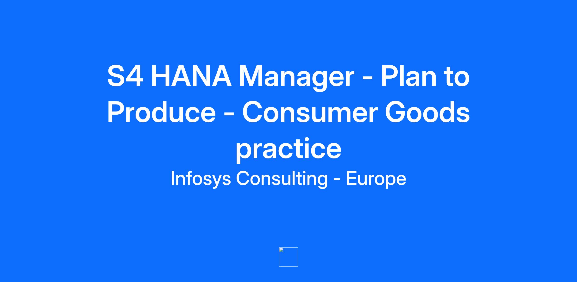S4 HANA Manager - Plan to Produce Consumer Goods, Retail & Logistics practice Senior Principal & Principal levels You want to boost your career and collaborate with expert, talented colleagues to solve and deliver against our clients' most important challenges? We are growing and are looking for people to join our team. You'll be part of an entrepreneurial, high-growth environment of 300.000 employees. Our dynamic organization allows you to work across functional business pillars, contributing your ideas, experiences, diverse thinking, and a strong mindset. Are you ready? Delivery of S/4HANA enabled transformation programmes - specialising in Manufacturing and production planning Designing end-to-end solutions and ensuring all deliverables produced by your team are consistent with best practice design principles, standards and methodologies Leading client workshops covering a range of topics including process design, industry best practices and bring SME knowledge in your chosen area of expertise Building end to end solution based on client requirements, and documenting functional specifications where a development object is required Deep expertise in MRP, Recipe Management, Production planning and Material Management About You You design and manage complete enterprise solutions. You demonstrate leadership of topics in the architect community and show a passion for technology and business acumen. You work as a stream lead at CIO/CTO level in a major client organization. You will lead Infosys Consulting operations relating to market development and/or service delivery excellence. You are seen as a role model in the community: Have a broad business skill set including stakeholder management, problem-solving, and resilience Have experience in gathering, validating, synthesizing, documenting, and communicating data and information for a range of audiences Have excellent interpersonal skills and strong written and verbal communication skills in country’s official language(s) (C2 proficiency) and English (C2 proficiency), project-related mobility/willingness to travel Demonstrable experience of delivering S/4HANA-based solutions in PP/Shop floor System architecture, and MRP Integration with best-of-breed application is desirable. Strong client-facing skills and ability to lead a workstream through all phases of SAP implementation Flexibility, adaptability, and process improvement approach A strong track record of professional success, preferably in the Consulting Services arena About your team Our CRL (Consumer Goods, retail & Logistics) practice helps some of the largest global firms and most recognizable local brands solve their biggest challenges in today’s age of constant disruption. With diverse services spanning growth strategy and new product innovation, to omni-channel customer experience, supply chain resiliency and AI-driven new business models, we help clients shape and achieve their growth agenda for a sustainable future. We transform traditional organizations to digitally centric business models and drive new revenue streams. About Infosys Consulting Be part of a globally renowned management consulting firm on the front-line of industry disruption and at the cutting edge of technology. We work with market leading brands across sectors. Our culture is inclusive and entrepreneurial. Being a mid-size consultancy within the scale of Infosys gives us the global reach to partner with our clients throughout their transformation journey. Our core values, IC-LIFE, form a common code that helps us move forward. IC-LIFE stands for Inclusion, Equity and Diversity, Client, Leadership, Integrity, Fairness, and Excellence. Within Europe, we are recognized as one of the UK’s top firms by the Financial Times and Forbes due to our client innovations, our cultural diversity and dedicated training and career paths. Infosys is on the Germany’s top employers list for 2023. Management Consulting Magazine named us on their list of Best Firms to Work for. Furthermore, Infosys has been recognized by the Top Employers Institute, a global certification company, for its exceptional standards in employee conditions across Europe for five years in a row. We offer industry-leading compensation and benefits, along with top training and development opportunities so that you can grow your career and achieve your personal goals. Curious to learn more? We’d love to hear from you.... Apply today!