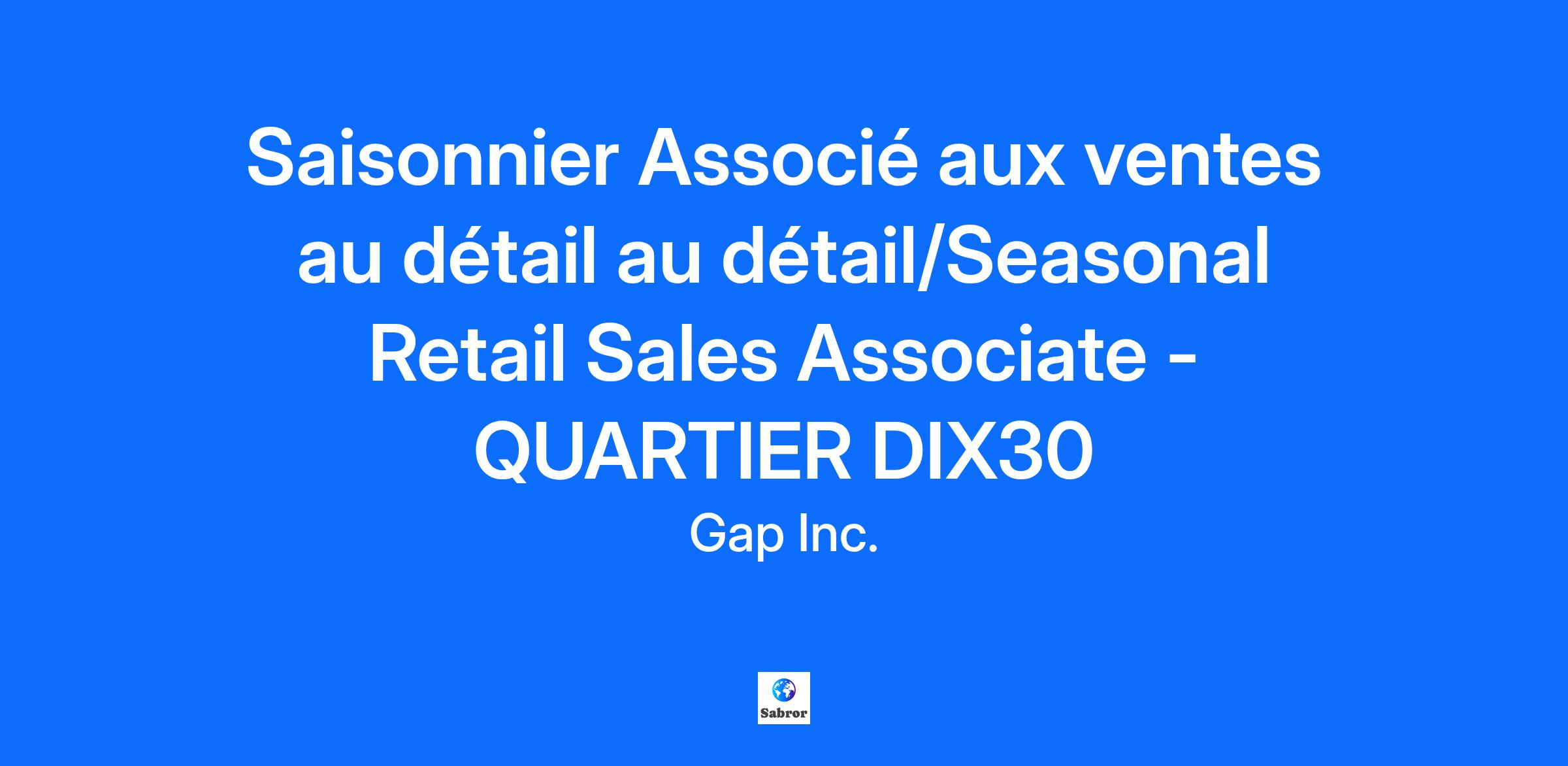 Saisonnier Associé aux ventes au détail au détail/Seasonal Retail Sales Associate - QUARTIER DIX30