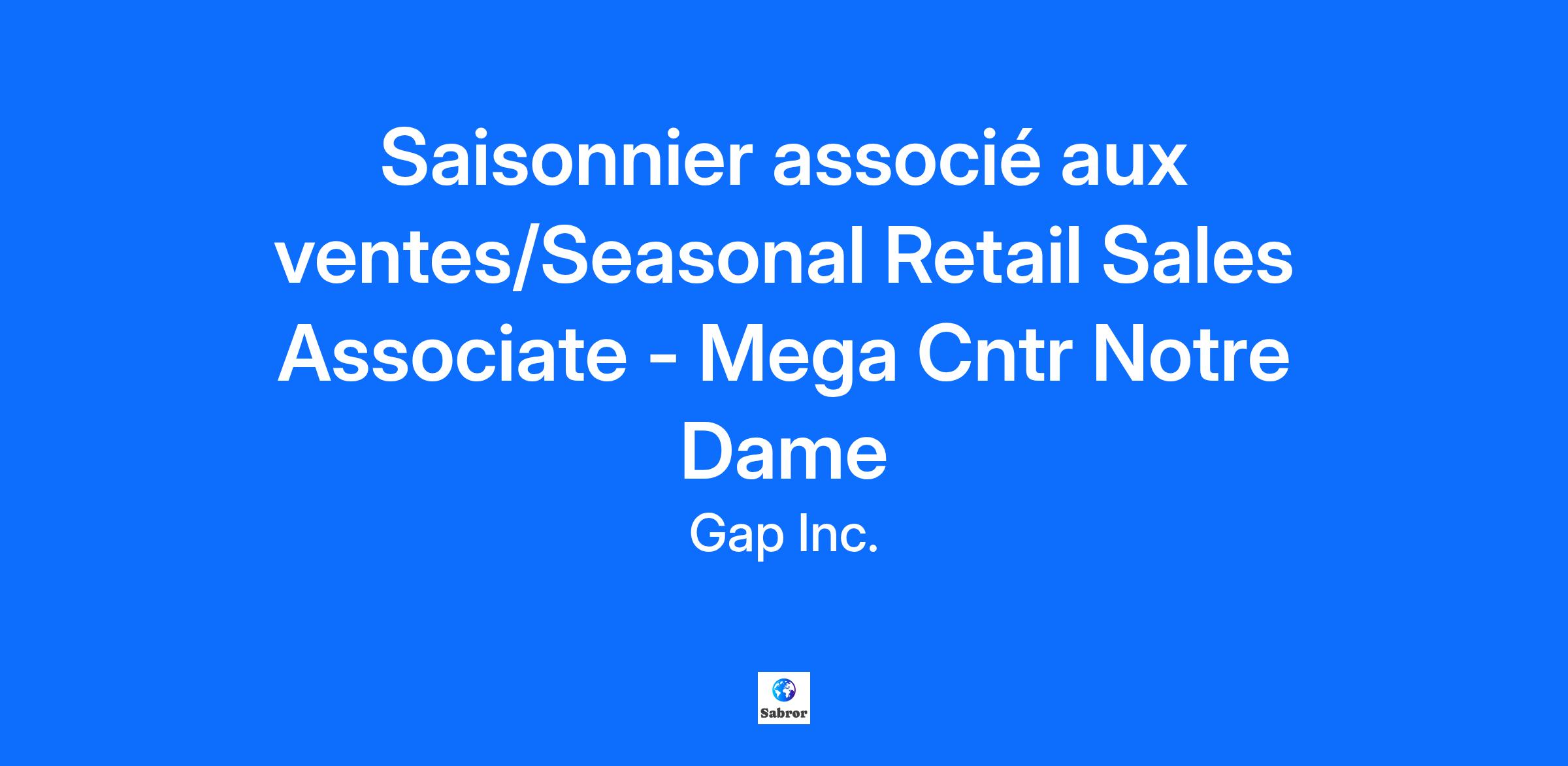 Saisonnier associé aux ventes/Seasonal Retail Sales Associate - Mega Cntr Notre Dame
