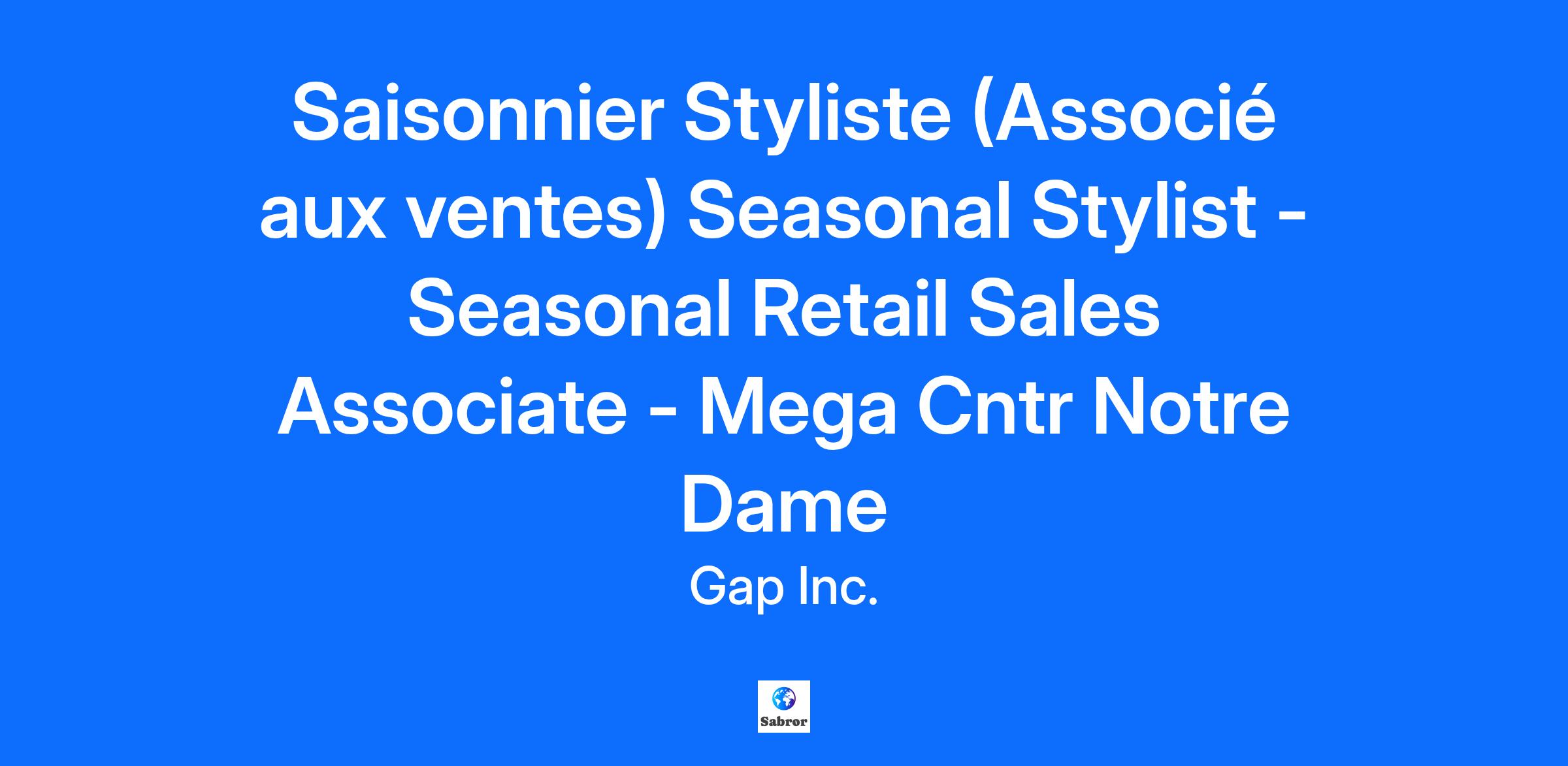 Saisonnier Styliste (Associé aux ventes) Seasonal Stylist - Seasonal Retail Sales Associate - Mega Cntr Notre Dame