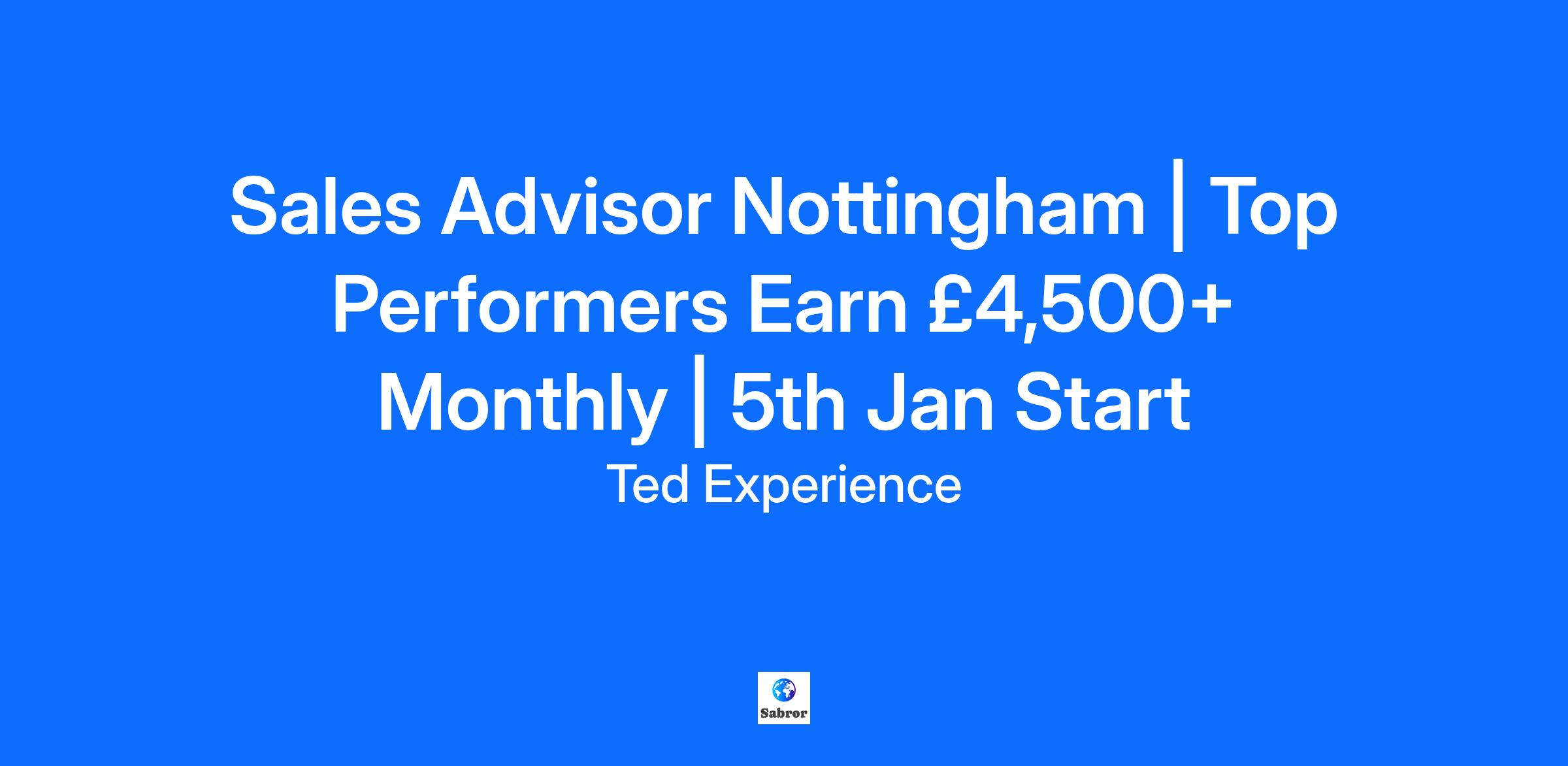 Sales Advisor Nottingham | Top Performers Earn £4,500+ Monthly | 5th Jan Start