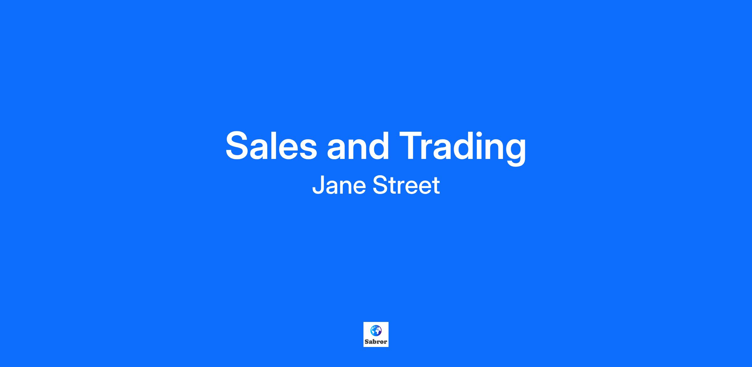 ABOUT THE PROGRAM Our internships [https://www.janestreet.com/join-jane-street/open-roles/?type=internship&location=new-york] center around hands-on mentorship and a robust educational curriculum that includes challenging classes, interactive sessions, and small group discussions. Over the course of 10-12 weeks, you’ll be matched with full-time employees who will mentor you as you tackle real-world projects they design. You’ll also have access to our physical and virtual educational resources, attend guest speakers and social events, and hopefully get a real sense of what it would be like to work here full time. If you have a passion for solving interesting problems, an interest in developing client relationships, and a deep curiosity in financial markets we have a feeling you’ll fit right in. ABOUT THE POSITION As a Sales and Trading intern, you’ll work alongside our experienced Sales people and Sales-Traders, learning how we engage and cover institutional clients on their trading needs in the different asset classes that we cover. They’ll offer insight into the types of client inquiries we handle daily, and you’ll learn how we service our clients, issuers, and prospective clients. The internship is a fast-paced, immersive experience, and you will attend internal classes on various topics where we can teach you the broader fundamentals of finance and trading. ABOUT YOU We don’t expect you to have a background in one specific field--we’re looking for smart, driven people who would enjoy working with clients to solve interesting problems. We’re more interested in how you think and learn than what you currently know. You should be: * Studying towards a Bachelor’s or Master’s degree, coming into or having completed your final year * Proactive, reliable, and courteous with strong interpersonal, team working and communication skills * A self-motivated and entrepreneurial problem-solver who is excited about building relationships with our clients and partners * A highly analytical and logical thinker, comfortable working with numbers * Extremely organized with excellent attention to detail * Interest in learning SQL and/or Python * Fluent in English, with proficiency in Spanish, Italian, French, Portuguese or German being a plus If you're a recruiting agency and want to partner with us, please reach out to agency-partnerships@janestreet.com.