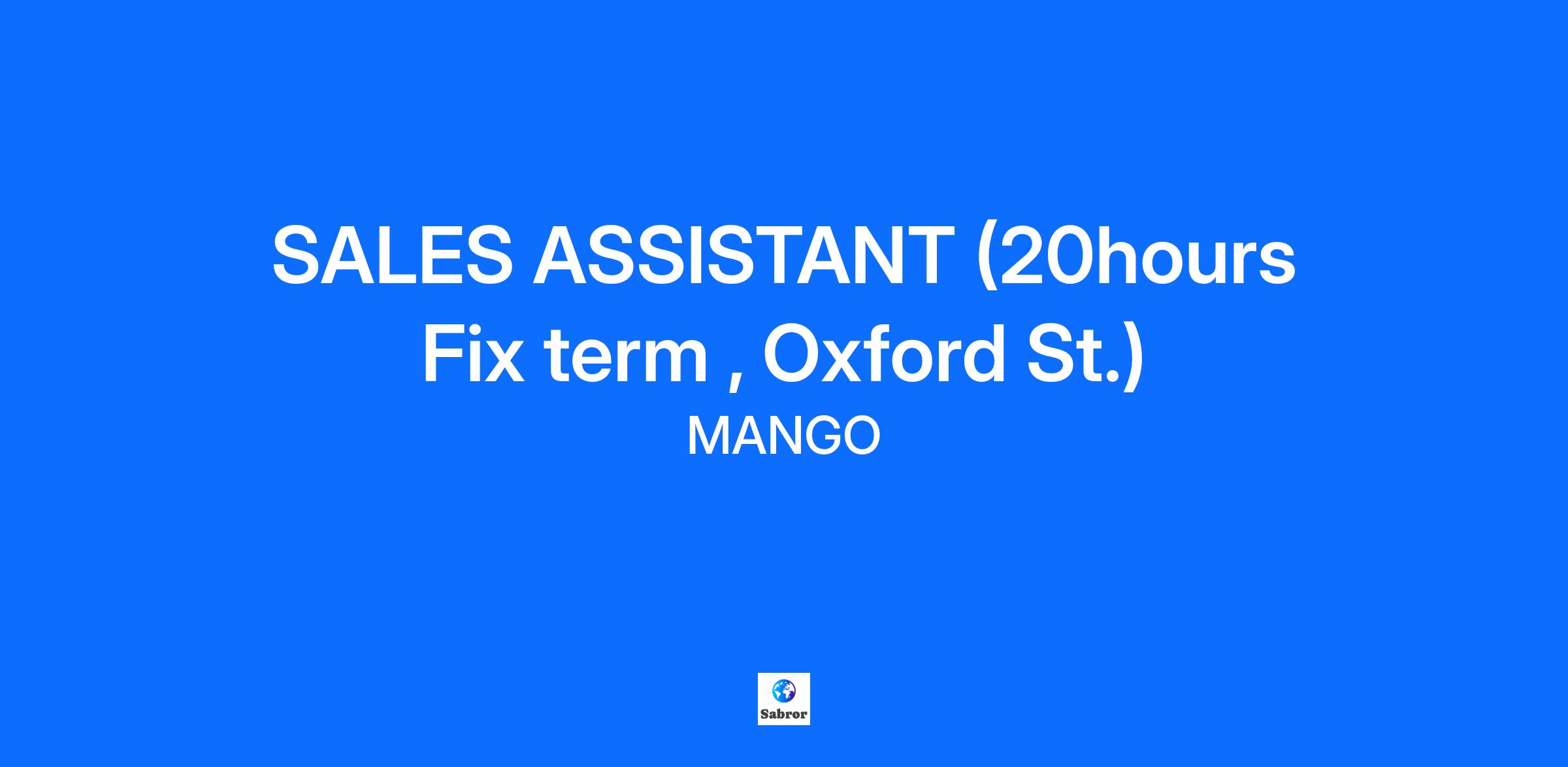 At Mango we style everything we do with passion. Founded in Barcelona and with presence in over 120 countries, we inspire the world with creativity, innovation and authenticity. Our multicultural team, is the driving force behind our success, connecting our unique style with people all over the world. For our store in Oxford St, we are looking for a Sales Assistant Part-time 20hours to join our team. Your aim will be to promote the brand's image and to maintain the highest standard of customer service at all times, to sell and gain the loyalty of our customers. You will also be involved in keeping the store tidy and organised as well as checking and replenishing stock. 20 hours fixed term over 2/3 days- evenings and weekend availability required YOUR MAIN RESPONSIBILITIES: To welcome, smile and approach customers displaying a cordial attitude and a willingness to serve To possess good product knowledge in order to be able to advise the customer in an optimal and precise manner. To be able to serve multiple customers simultaneously and offer excellent service to all of them. To be familiar with the sales targets and aim to achieve and exceed them, individually and as a team. To prioritise customer service above all other tasks To be familiar with and offer services according to the needs of customers in order to maximise sales. To provide support by maintaining an optimal store image that is attractive to customers at all times. ABOUT YOU: We are looking for a self-motivated team player who is a vibrant outgoing person and can demonstrate excellent communication skills, a proactive attitude and enthusiasm to represent the brand through the delivery of excellent customer service in order to achieve and exceed sales targets. Previous experience of working in fashion retail is desirable. YOUR BENEFITS: As a member of the Mango team, you’ll get a 35% discount on all our lines, so that you’ll always be wearing the latest! Employee Assistance Programme (EAP): confidential helpline, money concerns, general well-being and legal advice. At Mango, we invest in your personal and professional development. Access a wide range of training courses, personalized mentoring, continuous development programs and internal promotion opportunities that will drive you towards success. Think big! Mango offers you international opportunities in over 120 markets for you to broaden your horizons and grow with us globally. At Mango, we believe in an inclusive culture where creativity and innovation inspire us to take fashion further, therefore, we are committed to providing equal opportunities for all, valuing each person’s authenticity. Taking Fashion Further At Mango, we put passion into everything that we do. Born in Barcelona, we are the place where creativity, innovation, diversity, digitalization, and sustainability come together to make projects grow on a global level. Our entrepreneurial mentality leads us to create, reinvent, and discover, creating a unique experience for people, both team members and clients. Here you can be yourself and give free rein to all your potential and creativity to take fashion further. We are the best showcase to grow and develop yourself, the place that you will feel is yours so you can progress at the best company. If you are passionate about fashion and people... You are Mango.