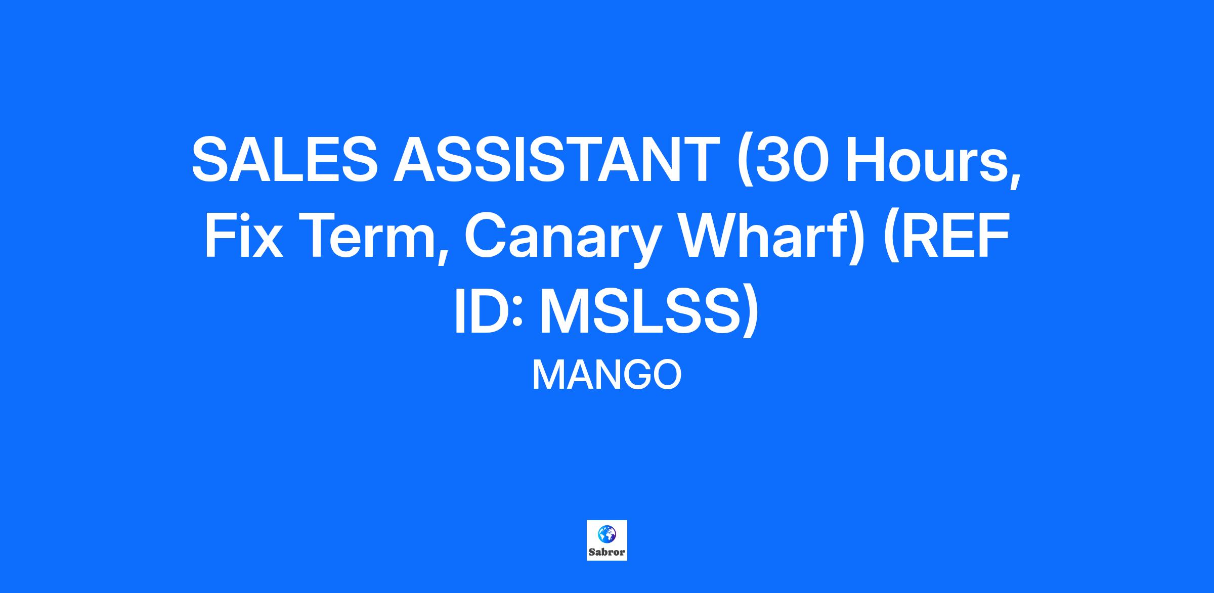At Mango we style everything we do with passion. Founded in Barcelona and with presence in over 120 countries, we inspire the world with creativity, innovation and authenticity. Our multicultural team, is the driving force behind our success, connecting our unique style with people all over the world. YOUR NEW JOB: For our Canary Wharf store, we are looking for a Sales Assistant to join our team. Your aim will be to promote the brand's image and to maintain the highest standard of customer service at all times, to sell and gain the loyalty of our customers. You will also be involved in keeping the store tidy and organised as well as checking and replenishing stock. 30 hours - over 4/5 days per week Monday to Sunday Fix Term YOUR MAIN RESPONSIBILITIES: To welcome, smile and approach customers displaying a cordial attitude and a willingness to serve To possess good product knowledge in order to be able to advise the customer in an optimal and precise manner. To be able to serve multiple customers simultaneously and offer excellent service to all of them. To be familiar with the sales targets and aim to achieve and exceed them, individually and as a team. To prioritise customer service above all other tasks To be familiar with and offer services according to the needs of customers in order to maximise sales. To provide support by maintaining an optimal store image that is attractive to customers at all times. ABOUT YOU: We are looking for a self-motivated team player who is a vibrant outgoing person and can demonstrate excellent communication skills, a proactive attitude and enthusiasm to represent the brand through the delivery of excellent customer service in order to achieve and exceed sales targets. Previous experience of working in fashion retail is desirable. In our recruitment process, we use artificial intelligence tools to support the review of applications, the preliminary analysis of profiles, the identification of suitable competencies, and the efficient management of received applications. In addition, we may contact you via WhatsApp using the phone number you provide to coordinate interviews, exchange information, or send quick updates about your application. The final decision will always be made by a person, ensuring that AI serves as a support tool rather than a substitute for human evaluation. YOUR BENEFITS: As a member of the Mango team, you’ll get a 35% discount on all our lines, so that you’ll always be wearing the latest! Employee Assistance Programme (EAP): confidential helpline, money concerns, general well-being and legal advice. At Mango, we invest in your personal and professional development. Access a wide range of training courses, personalized mentoring, continuous development programs and internal promotion opportunities that will drive you towards success. Think big! Mango offers you international opportunities in over 120 markets for you to broaden your horizons and grow with us globally. At Mango, we believe in an inclusive culture where creativity and innovation inspire us to take fashion further, therefore, we are committed to providing equal opportunities for all, valuing each person’s authenticity. Taking Fashion Further At Mango, we put passion into everything that we do. Born in Barcelona, we are the place where creativity, innovation, diversity, digitalization, and sustainability come together to make projects grow on a global level. Our entrepreneurial mentality leads us to create, reinvent, and discover, creating a unique experience for people, both team members and clients. Here you can be yourself and give free rein to all your potential and creativity to take fashion further. We are the best showcase to grow and develop yourself, the place that you will feel is yours so you can progress at the best company. If you are passionate about fashion and people... You are Mango.