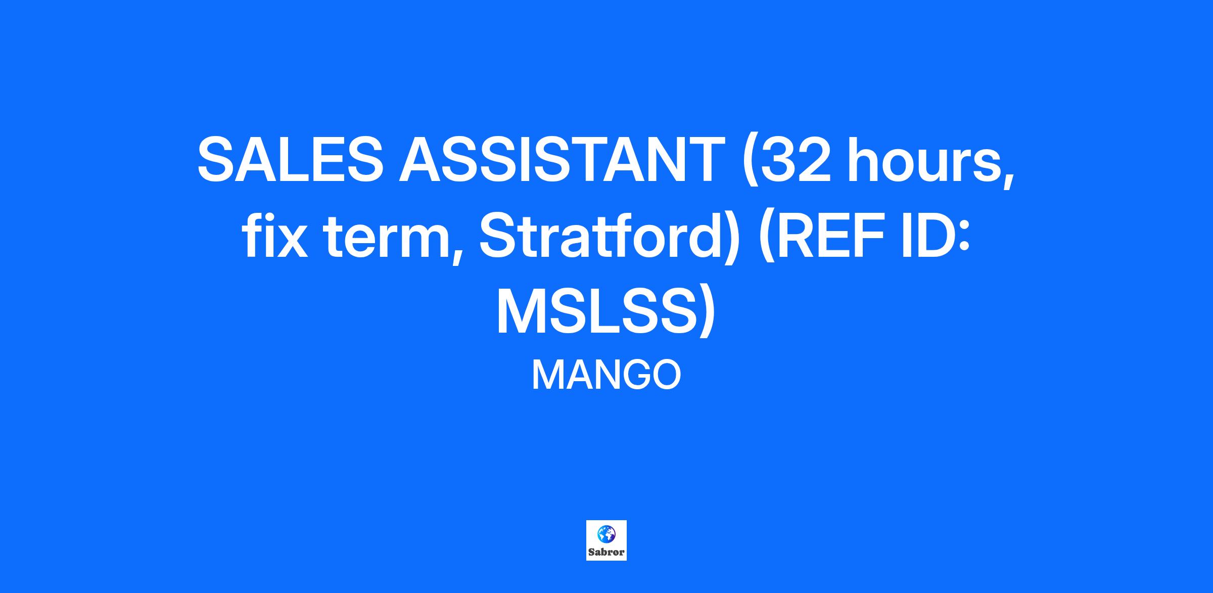 At Mango we style everything we do with passion. Founded in Barcelona and with presence in over 120 countries, we inspire the world with creativity, innovation and authenticity. Our multicultural team, is the driving force behind our success, connecting our unique style with people all over the world. YOUR NEW JOB: For our Stratford store, we are looking for a Sales Assistant to join our team. Your aim will be to promote the brand's image and to maintain the highest standard of customer service at all times, to sell and gain the loyalty of our customers. You will also be involved in keeping the store tidy and organised as well as checking and replenishing stock. 32 hours - over 4/5 days per week Monday to Sunday Fix Term YOUR MAIN RESPONSIBILITIES: To welcome, smile and approach customers displaying a cordial attitude and a willingness to serve To possess good product knowledge in order to be able to advise the customer in an optimal and precise manner. To be able to serve multiple customers simultaneously and offer excellent service to all of them. To be familiar with the sales targets and aim to achieve and exceed them, individually and as a team. To prioritise customer service above all other tasks To be familiar with and offer services according to the needs of customers in order to maximise sales. To provide support by maintaining an optimal store image that is attractive to customers at all times. ABOUT YOU: We are looking for a self-motivated team player who is a vibrant outgoing person and can demonstrate excellent communication skills, a proactive attitude and enthusiasm to represent the brand through the delivery of excellent customer service in order to achieve and exceed sales targets. Previous experience of working in fashion retail is desirable. In our recruitment process, we use artificial intelligence tools to support the review of applications, the preliminary analysis of profiles, the identification of suitable competencies, and the efficient management of received applications. In addition, we may contact you via WhatsApp using the phone number you provide to coordinate interviews, exchange information, or send quick updates about your application. The final decision will always be made by a person, ensuring that AI serves as a support tool rather than a substitute for human evaluation. YOUR BENEFITS: As a member of the Mango team, you’ll get a 35% discount on all our lines, so that you’ll always be wearing the latest! Employee Assistance Programme (EAP): confidential helpline, money concerns, general well-being and legal advice. At Mango, we invest in your personal and professional development. Access a wide range of training courses, personalized mentoring, continuous development programs and internal promotion opportunities that will drive you towards success. Think big! Mango offers you international opportunities in over 120 markets for you to broaden your horizons and grow with us globally. At Mango, we believe in an inclusive culture where creativity and innovation inspire us to take fashion further, therefore, we are committed to providing equal opportunities for all, valuing each person’s authenticity. Taking Fashion Further At Mango, we put passion into everything that we do. Born in Barcelona, we are the place where creativity, innovation, diversity, digitalization, and sustainability come together to make projects grow on a global level. Our entrepreneurial mentality leads us to create, reinvent, and discover, creating a unique experience for people, both team members and clients. Here you can be yourself and give free rein to all your potential and creativity to take fashion further. We are the best showcase to grow and develop yourself, the place that you will feel is yours so you can progress at the best company. If you are passionate about fashion and people... You are Mango.