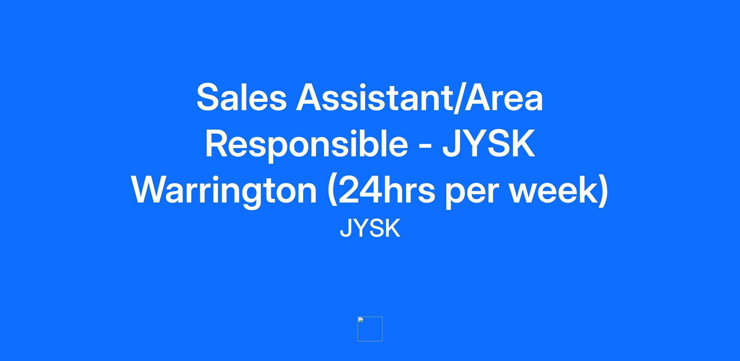 Company DescriptionWe believe that our employees are key to our success going from one store in 1979 to more than 3,000 stores worldwide today. That is why we strive to offer development and possibilities of growing within JYSK, and we also take pride in rewarding engagement and a great effort among our employees. Our three fundamental JYSK Values – Tradesman, Colleague and Corporate Spirit – express the behavior and attitude that we can expect from each other. We trust each other, and we believe in delegation and freedom with responsibility. For more information, please visit our career page.Job DescriptionAre you excited about sales? And do you want to provide JYSK in the UK best customer service together with your team? Do you like variation and a fast-paced environment? 💪Then you can be the Sales Assistant we are looking for! 🙋WHAT WE OFFER YOUYou get the chance to join a retail company that wants to be the candidate’s first choice when choosing an employer. We are dynamic and here your inputs get heard, you get involved and your development is crucial to us. Additionally, as JYSK ambassador, you get the following:Opportunities for own development and responsibility – we aim to appoint 80 % of our future managers internally. Learn more here.Internal contests between stores with attractive prizesSocial activities and a fun place to workCompetitive bonus that rewards great sales resultsA flexible working schedule20% discount at JYSK and Lars Larsen Group companiesA business that rewards enployees over Christmas by closing all stores for 3 daysWHAT YOUR NEXT JOB WILL BE ABOUTYou are responsible for sales in the store: you offer our customers top service with a smile!Ensure a store that is 100% clean and well filled with our productsYou will assist in receiving, unpacking and putting away the goods, both in the warehouse and in the store so you are not put off by physical workHave the exciting opportunity to get the responsibility of your own area in the storeMeet one of our Sales Assistants and learn about how we are as an employer here.WHAT YOU SHOULD BRINGYou are outgoing, take initiatives and give our customers the best shopping experience they could imagineHave a contagious enthusiasm and enjoy talking to customersYou are a good colleague for your team – together you go the extra mile to achieve great resultsLove the variety and are flexible: both in terms of tasks and in terms of hoursEnjoy time off during the week so that you can be ready for our customers during weekends at workIS THIS YOUR NEXT OPPORTUNITY? Apply today!For any advice or support, email us at [email protected] and we’ll be happy to help!Recruitment process:We process applications on an ongoing basis and complete the recruitment when we have found the right candidate.We always conduct interviews - for selected positions you can expect to have assessments and a video interview, where we look forward to hearing about your motivation for the job.Additional InformationUp to 24 hour per week contract, plus overtime availableMust have flexible availability through the week1 Weekend day per week required (Saturday or Sunday)£12.55 per hourLucrative Monthly sales bonus available when total store sales target is achievedTesting of job ad footer Phone Number for Contact: +44 1925 390670