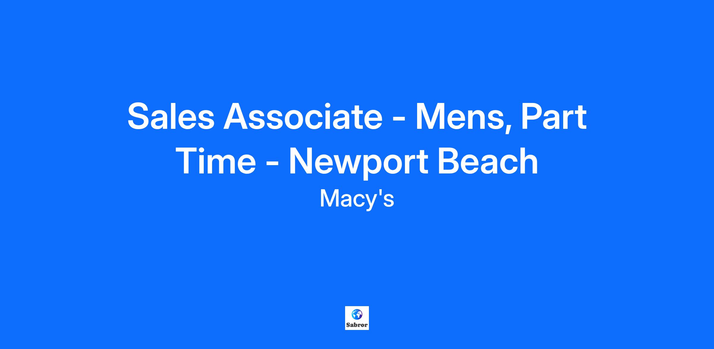 Sales Associate - Mens, Part Time - Newport Beach
