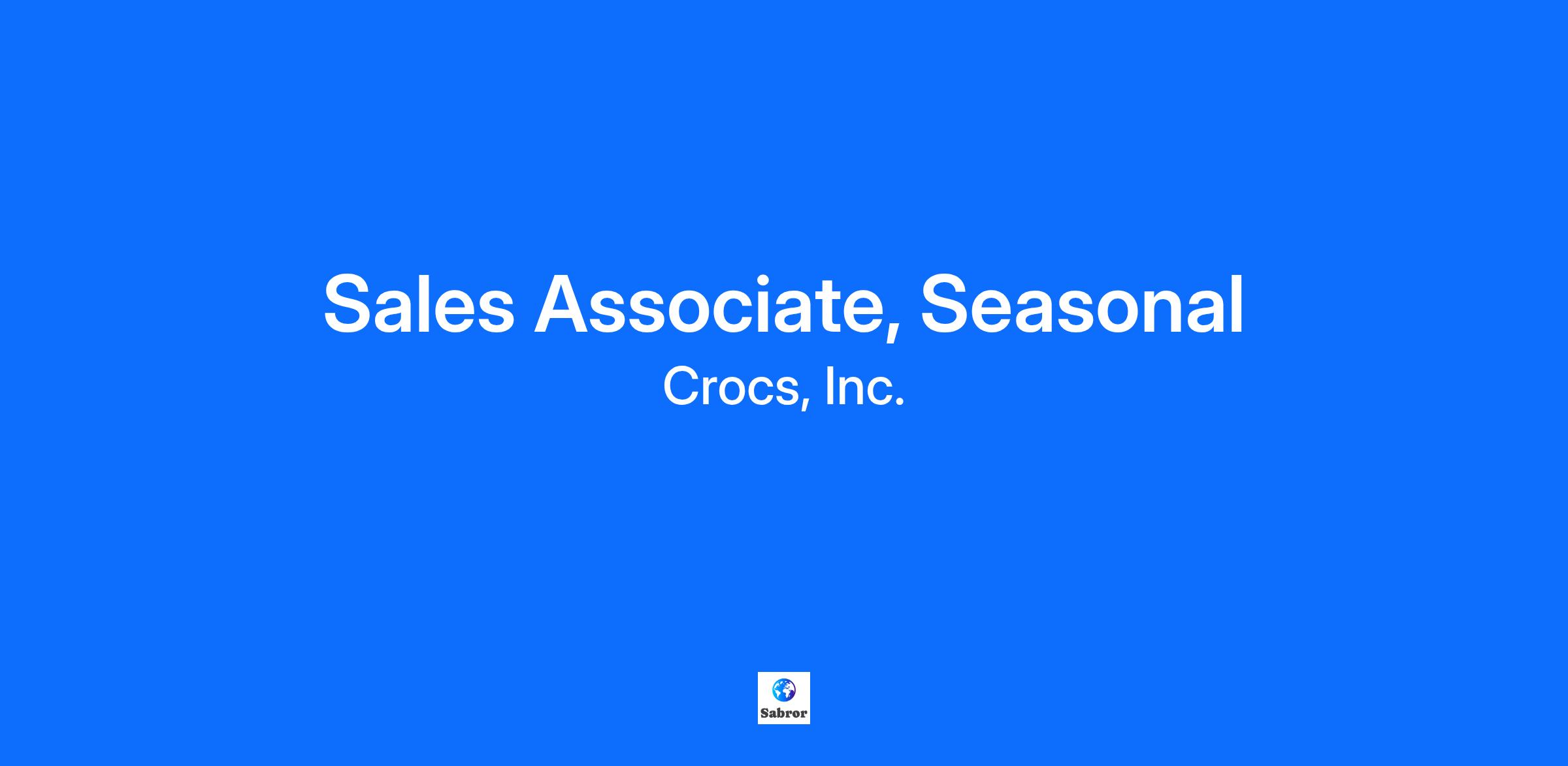 At Crocs, Inc., every career offers a chance to make a real impact. No two journeys look the same. And that's exactly how we like it. Whether you’re welcoming customers into our stores, collaborating with global teams at our headquarters, or keeping operations moving at our distribution centers, your impact is real and valued. At Crocs, Inc. you’re not expected to fit a mold. You’re encouraged to break it and create something better. Overview As a Sales Associate, you will have the opportunity to deliver exceptional experiences and provide world-class service to our valued consumers every day. From educating consumers about our products, in-store promotions, and events to supporting the store team in achieving company goals and initiatives, this role offers growth potential alongside the industry’s finest teammates and partners.What You'll Do Deliver outstanding service to our consumers using our C.H.A.R.M service model Proactively contribute to creating an enjoyable team environment that fosters the sharing of suggestions, ideas, and concerns Learn & assist in various departments within the store including consumer service, product knowledge and placement, visual presentation, and stock room management. Support team members in the daily execution of retail operations such as POS system management, stock replenishment, pricing and markdown processes, promotion of loyalty programs, and maintaining cleanliness and recovery standards. Leads by example and collaborate with Store Management to improve personal key performance indicators through sales-driven techniques Adhere to Crocs Asset Protection policies and procedures, including shortage prevention, inventory control, and compliance proceduresWhat You'll Bring to the Table Must be 16 years or older Flexibility in work schedule, including availability for nights, weekends, holidays, and extended hours, with regular attendance being essential Desire to succeed in a high-growth, fast-paced retail environment The work environment and physical demands described here are representative of those that an employee will encounter while performing the essential functions of this job. Reasonable accommodations may be made to enable individuals with disabilities to perform essential functions. Ability to move merchandise with appropriate equipment to and from the backroom and sales floor daily Ability to place and arrange items on all shelves and racks daily Ability to climb and descend ladders carrying merchandise daily Ability to lift 30 pounds or more with assistance daily Ability to be on your feet for at least 8 hours per shift and to continuously move around all areas of the store daily Ability to also be required to stand, walk, kneel, or balance for a duration of time daily Ability to read instructions, reports, and information on computer/register screens and to key information into the computer daily The Company is an Equal Opportunity Employer committed to a diverse and inclusive work environment. All qualified applicants will receive consideration for employment without regard to race, color, religion, sex, sexual orientation, gender identity, national origin, or disability, or any other classification protected by law. Title: Sales Associate, Seasonal Salary or Pay Range: $15.00 - $17.50 Pay is dependent on experience and geographic area. Job Category: Retail