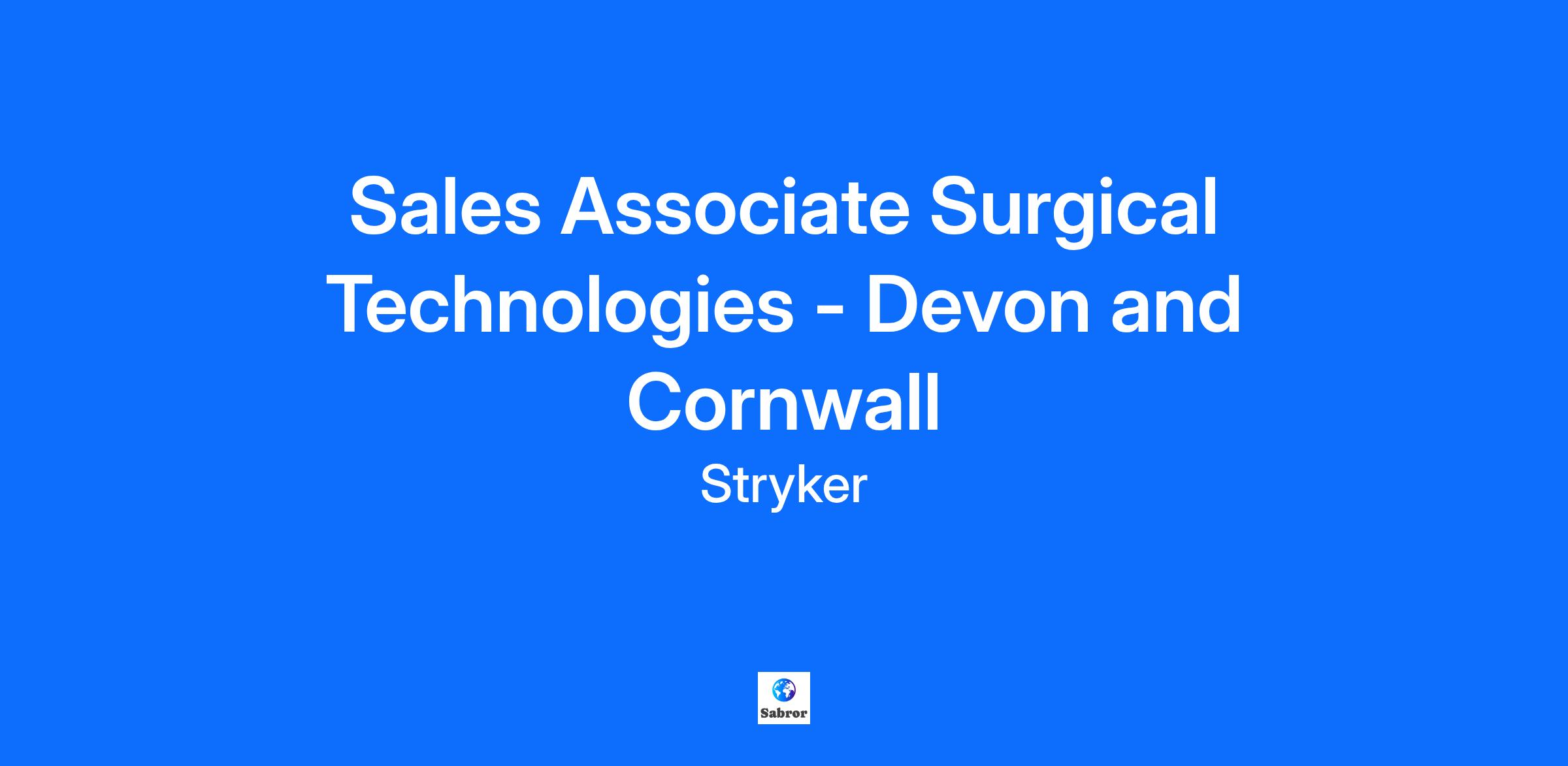 Work Flexibility: Field-based We are looking to recruit a Sales Associate within the Surgical Technologies (ST) Division In the Devon and Cornwall Region. You will play a significant role within a highly engaged and successful sales team, who all share the same belief; helping our customers to improve patient care and outcomes through the use of our products and services. Our new team member must contribute to our inclusive team culture which, is very much aligned to Stryker’s values – integrity, accountability, people and performance. This new territory will add additional focus to grow the Devon and Cornwall area by providing our innovative products to help protect healthcare professionals. The successful candidate will be responsible for our ST portfolio, requiring a hypergrowth mindset to drive adoption of our Neptune 3, Neptune S and SafeAir portfolios. The focus for the role is to drive capital sales growth whilst delivering value-based business proposals to target customers. The role involves market creation and change management, therefore an understanding of the capital sales process across the NHS & Private sector will be viewed favourably. Responsibilities Develop and maintain outstanding relationships with Stryker’s existing customers and drives recurrent sales cycles and continuous growth. Cultivate new sales opportunities in-line with our strategy, whilst creating and executing a quarterly/annual business plan to achieve quota Deliver training sessions and workshops on the use of our ST products to Health Care Professionals Create and present business cases for our product portfolio to key customer stakeholders (right up to C-Suite level) Map details of customers and maintain a business plan highlighting daily, weekly and monthly goals. Prioritising and allocating resources to effectively grow your territory Attending training meetings, trade shows and other internal/ external events to represent Stryker and give visibility to our products. Achieve territory financial targets through effective pipeline management Who We Want Charismatic networkers – Relationship focused people who intentionally make connections with both internal partners and external contacts. Strategic closers Salespeople who close profitable business and consistently exceed their performance objectives. Challengers - People who seek out the hard projects and work to find just the right solutions. Game Changers Persistent salespeople who will stop at nothing to live out Stryker’s mission to make healthcare better. Customer-Oriented achievers Representatives with an unparallel work ethic and customer-focused attitude who bring value to their performance objectives. Teammates Partners who listen to ideas, share thoughts and work together to move the business forward so that both you and the team win. What You Need Training in a medical / scientific / technical career or a degree in sciences / business based subject (or equivalent experience) Proven success in sales (medical device experience would be advantageous) Proven success in capital sales (understanding of the NHS procurement cycle would be advantageous) An individual who takes ‘ownership’ with a focus on delivering results Ability to demonstrate your drive and desire to consistently succeed and win Ability to work autonomously, organise your own diary and prioritize workload Somebody aligned to our Values –Integrity, Accountability, People, and Performance Strong communication and interpersonal skills Commercial acumen, ideally a knowledge of the NHS / Private medical sector English language A full, valid driver’s license What do we offer in return? Ability to discover your strengths, follow your passion and own your own career In-house product training program Field sales training Sales career path toward uncapped earning potential Quality products that improve the lives of customers and patients A winning team driven to achieve our mission and deliver remarkable results Co-workers committed to achieving more and winning the right way Our benefits include bonuses; commissions; healthcare; family and parenting leaves; wellness programs; discount purchase programs; and service and performance awards – not to mention various social and recreational activities. In line with the requirements of the role, you will also receive a mobile phone, laptop, and company car or car allowance. Who is Stryker? Stryker is one of the world’s leading medical technology companies and together with our customers, we are driven to make healthcare better. The Company offers a diverse array of innovative medical technologies, including orthopaedics, medical and surgical, and neurotechnology & spine products to help people lead more active and more satisfying lives. Stryker is a global leader in medical technologies and, together with its customers, is driven to make healthcare better. The company offers innovative products and services in MedSurg, Neurotechnology, Orthopaedics and Spine that help improve patient and healthcare outcomes. Alongside its customers around the world, Stryker impacts more than 150 million patients annually. Travel Percentage: 70% Stryker is one of the world’s leading medical technology companies and, together with its customers, is driven to make healthcare better. We offer innovative products and services in Orthopaedics, Medical and Surgical, and Neurotechnology and Spine that help improve patient and hospital outcomes. We are proud to be named one of the World’s Best Workplaces! For more information, visit: www.stryker.com Work Flexibility Remote – Role allows you to work the majority to 100% of time from an alternate workplace. These roles could have travel expectations, and you must work within the country of the job requisition location. Field-based – You can expect to regularly work a majority to 100% of time at customer facilities and has a set territory or expectation to travel within a set boundary. Almost 