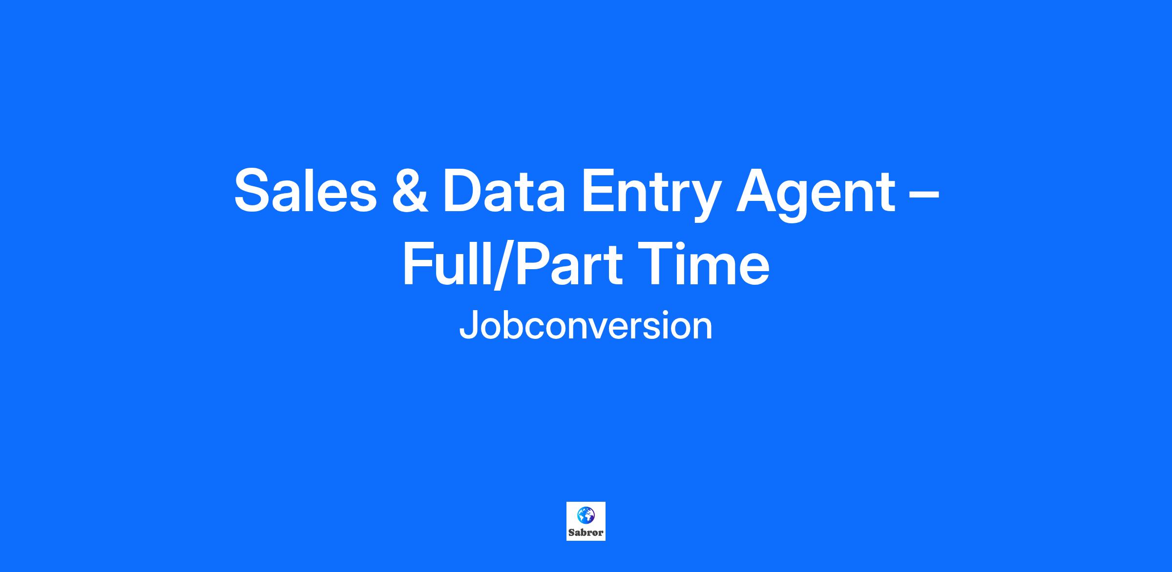 Sales & Data Entry Agent – Full/Part Time