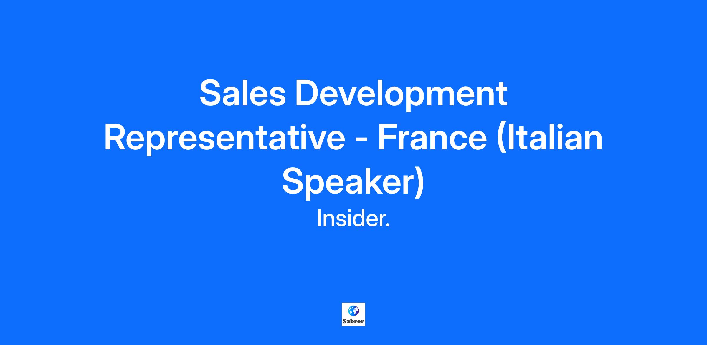 Before jumping into all the information about the role and what you can bring to the table, let us introduce ourselves real quick. About us We are Insider, the fastest-growing global MarTech scale-up and the #1 AI-native Customer Experience and Marketing platform trusted by enterprise brands worldwide. Our story began with six desks and a vision to create a single platform to make industry-first CX technologies and emerging channels accessible to marketers worldwide. Today, with 1500+ teammates across 50+ nationalities, we continue to push the boundaries of what’s possible in CX. Our architecture brings together unified customer data, advanced journey orchestration, and comprehensive AI capabilities by seamlessly blending predictive, generative, and agentic AI into a single customer engagement platform that empowers teams to activate customer engagement across 12+ channels. We recently raised one of the largest funding rounds in the industry, a $500M Series E led by General Atlantic. We are backed by top-notch investors, including Sequoia Capital, QIA, Riverwood, and Endeavor Catalyst, and trusted by 1200+ brands from high-growth startups to the most prestigious Fortune 500 companies such as Samsung, Nike, L’Oreal, Singapore Airlines, Nestlé, Nissan, Lenovo, Puma, IKEA, Allianz, Domino's, and the list goes on. Insider was congratulated for becoming one of the only woman-founded, women-led B2B SaaS unicorns in the world, achieving $200M in CARR (Committed Annual Recurring Revenue). According to Gartner, we are the dominant leader in Multichannel Marketing. Don’t just take our word for it — see for yourself [https://www.gartner.com/reviews/market/multichannel-marketing-hubs/compare/product/braze-customer-engagement-platform-vs-insider-vs-salesforce-cloud]. We consistently outperform and continue our leadership, and the results speak for themselves. [https://useinsider.com/insider-migration/] From day one, Insider’s mission has not been only to build a world-class product company, but also to create one of the most socially progressive technology communities in the world. Through our corporate social responsibility initiatives like 100 Social Responsibility Projects, AI Training for Teachers, Code Academy, SheCodes, SheLeads, and SheMarkables, our community has committed to scaling its impact on our communities across 27+ countries, driving initiatives in health, education, farming, animal rights, and increasing women’s representation in STEM. Behind all these achievements is an exceptionally talented, visionary team of overachievers across 27+ countries that moves fast and agile, creating cutting-edge products, and focuses on making an impact. If you want to be a part of this journey, just keep reading. The person, who takes this position, will be based in our Paris office. So… you’re wondering what this role is about: To be honest, we are not looking for a Sales Development Representative, that’s merely a title. What we are looking for is Hunger! For people who are hungry to go out and play in the major leagues even though they have no name, sit down and drive results that create an impact, and go out of their way to get things done when it matters most. We’re looking for freshers who possess the energy, passion, drive, and most importantly, the desire to prove themselves and create an impact. The Sales Development Representative is a role that can be considered the backbone of sales at Insider. A crucial part of this role is to identify and reach out to prospective sales opportunities. This is where our ‘growth’ begins. We also realize that most Job Descriptions almost always sound like the description of an A-380 but when you’ve arrived at the airport what you find is a Cessna twin seater! We want to write a JD that’s realistic and as close to the real thing as possible. How can we do this? So, we thought about it and realized that the best JD for this role is one that comes from the insights of other Sales Development Representatives. Here’s what they have to say: - We identify new sales opportunities through inbound leads - Follow-up with prospects through outbound cold calls and emails - Understand customer needs and requirements - Brainstorm with the team on how we can identify key players and generate interest about Insider’s products - The most crucial part is maintaining and expanding the prospect database in our assigned segments Okay… now you’re thinking, what do we expect from you? Passion. Preferably a truckload of it! Okay, jokes apart, we are looking for the perfect fit, someone who’s got the skills, experience, passion an innate desire to learn, and a curious approach towards the role. And we go the extra mile to find it, searching high and low, far and wide; now you know how we made offices in 25+ regions. \n What we need from you: * Native Italian speakers * Previous SDR experience * Fresh perspectives are something we value * University degree in a related field * A fair understanding of the e-commerce markets would be a plus * Ability to multitask and manage time effectively * Excellent oral and written communication skills * You’re a natural around the phone and dialing dozens of numbers a day is a piece of cake for you * A passion for market research, identifying key players, and generating leads * Ability to be flexible and adapt quickly in a fast-paced, start-up environment * A fair understanding of Digital Marketing or experience in a customer-oriented position * Have an excellent command of written and spoken English Alright.. so now you’re contemplating, what’s in it for me? * A chance to work in an international, diverse, and inclusive environment, * Access and opportunity to gain a limitless network all over the globe, * A chance to become a Shareowner with the "Shareowner System" that we offer to all Insiders who meet certain criteria, * To be part of an industry that’s shaping the future of customer experience *