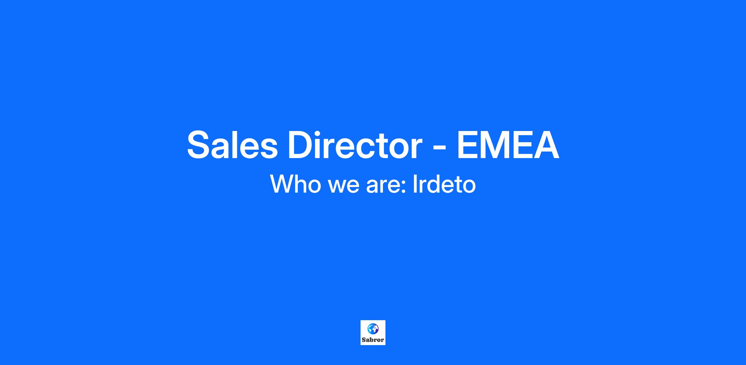 We are looking for a results-driven and strategic Sales Director to lead the growth of our streaming solution - Irdeto Experience - business across the Europe region. This is a high-impact sales leadership role with clear performance and revenue targets.
