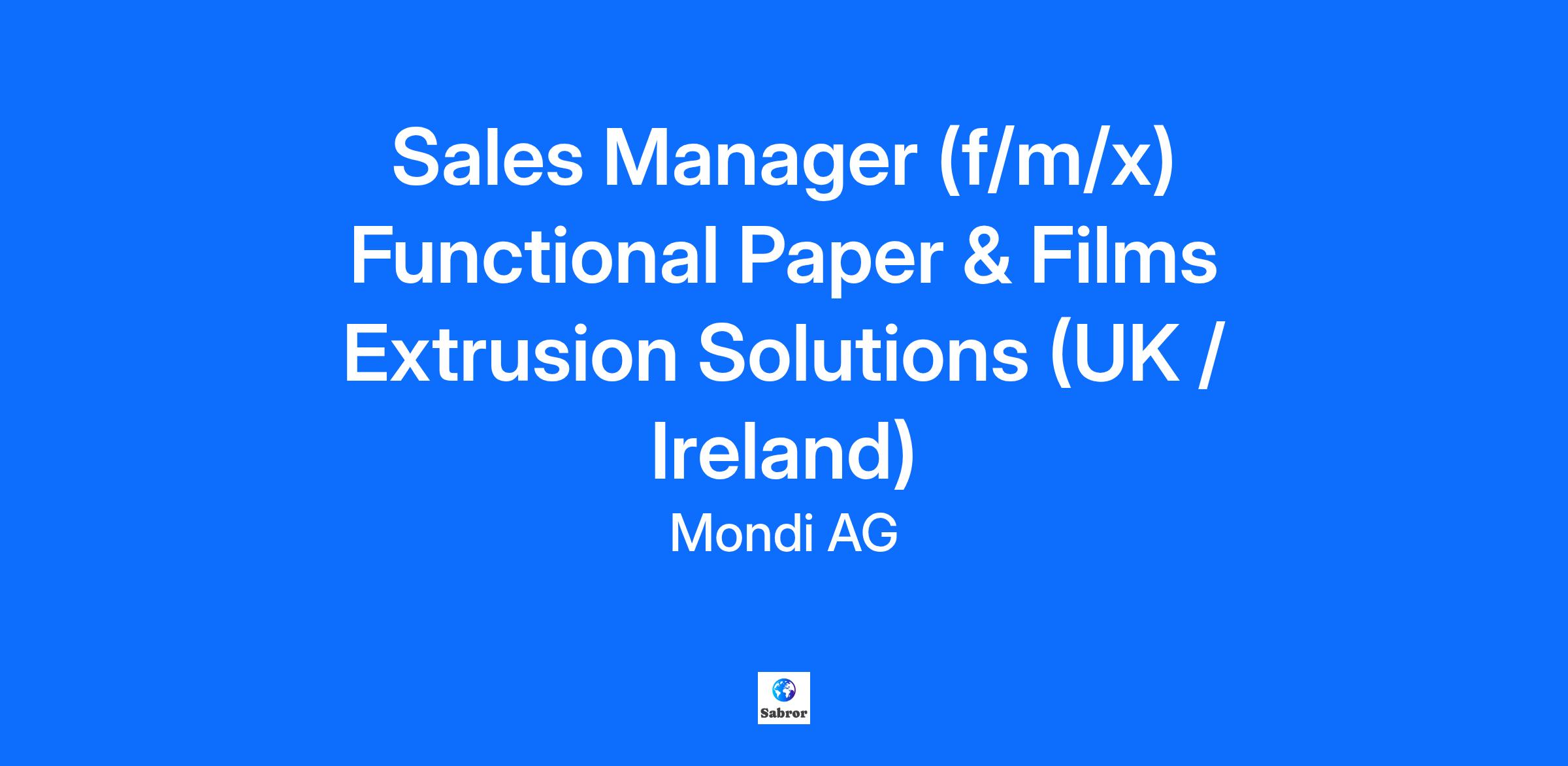 Job Summary: Mondi FPF is the acknowledged European market leader in extrusion coating and extrusion laminating. The Sales Manager will have the responsibility to grow prof-itable business in Extrusion Coatings in existing and new customers in the UK and Ireland. Your mission: Full sales responsibility for Extrusion Coatings products in the region. Support existing and potential customers. Develop solutions to increase profitable sales and acquire new clients, prioritising value over volume. Monitor market trends and competitor activity; communicate insights. Introduce new products to grow sales and enhance solu-tions. Handle claims and coordinate responses. Prepare, monitor, and follow up on budgets and forecasts. Collaborate with plant Market Support teams to optimise customer supply chains. Your profile: Sales professional with proven track record, ideally in extrusion coating, technical films consumer packaging, converting, film or paper. Experience in developing new markets and customers. An autonomous, adaptable individual with the ability to work efficiently with senior management, production operatives, and customers. Business (and/or technical) education, at least passed with Bachelor degree level. Fluent in English, other languages an advantage. Flexibilty to travel up to 80%. Our offer: Being part of a market leader of the packaging & paper industry Start: as soon as possible Location: Home-office, within the EU Extent: full-time Benefits: Remote work flexibility; Learning & Development Get in touch: We strive to create a culture that inspires our people to reach their full potential. Going the extra mile – for colleagues and customers – our people drive our passion for performance and are the key ingredient of Mondi’s success. Be part of our future. Do you want to know more about Mondi? We are a global leader in packaging and paper, contributing to a better world through innovative solutions that are sustainable by design. Our global team of 24,000 people works across 100 production sites in more than 30 countries. Our strength lies in our diversity. We are dedicated to creating a team that reflects the diversity of the world we operate in. We encourage applications from traditionally underrepresented groups, including women, visible minorities, LGBTQI+ individuals, and people with disabilities. Even if you don't meet all the listed qualifications, we still want to hear from you. We believe in your potential and are committed to supporting you as you grow and learn at Mondi. If you need any accommodations during the recruitment process, please reach out to the contact person listed above. Only CVs uploaded onto our online career platform will be taken into consideration. With your application, you will be redirected to our recruiting platform. After creating an account, you will receive an activation link. If you do not find the email in your inbox, please check your spam folder or add the address no-reply@mondigroup.com “safe list” or address book. Awards: