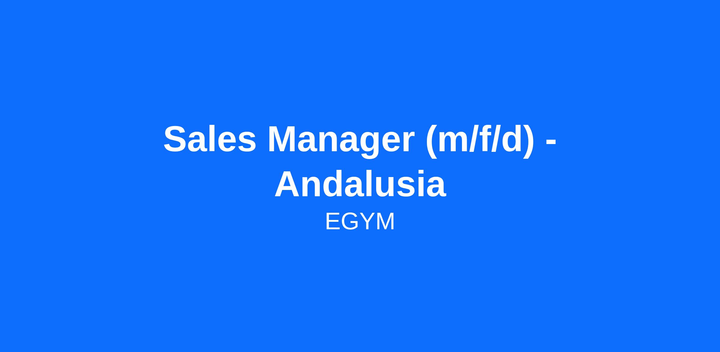 Passionate about sales and tech? Join us as Area Sales Manager (m/f/d) in Andalusia. With your experience in B2B sales and in fitness you will shape the future of EGYM with us. Contribute to our mission of making the gym work for everyone and help establish EGYM as Spain's top fitness solution. Apply now and be part of our success story!