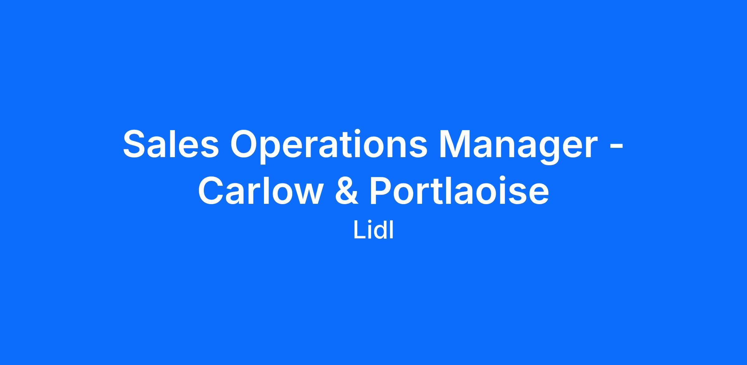 Sales Operations Manager - Carlow & Portlaoise