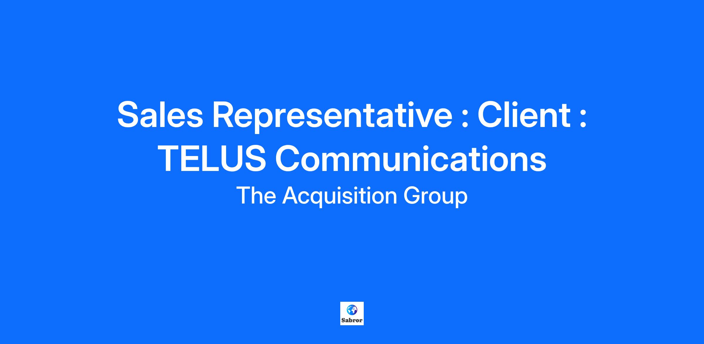 In the pursuit of expanding our team with dedicated professionals, we are currently seeking Sales Representatives to join our esteemed organization The Acquisition Group for our client TELUS Communication. As a Sales Representative, your principal role will entail engaging with clients/homeowners, introducing our products and services, and upholding the highest standards of customer service. Key Responsibilities: · Approach residential clients with a courteous and professional demeanor. · Present our products and services with passion, conveying their value. · Responsively address inquiries and provide comprehensive information. · Realize defined sales objectives through effective closure of sales transactions. · Maintain precise and organized records of all sales and customer interactions. Qualifications: · Outstanding verbal and written communication skills. · Demonstrated self-motivation and an unwavering commitment to achieving results. · Proficiency in both independent work and collaboration within a team setting. · Prior sales experience is advantageous, but not required · Willingness to work outdoors and actively engage in door-to-door canvassing. What We Offer: · Commission based compensation dependent on commission rates associated to a successfully sold product · Comprehensive training with ongoing support to ensure your success. · Opportunities for career advancement and growth within our organization. · Flexible scheduling to accommodate work-life balance. By joining our distinguished team, you will embark on a journey toward a prosperous career in sales. If you are characterized by professionalism, determination, and a readiness to take on challenges, we eagerly anticipate your application. Please submit your comprehensive resume.