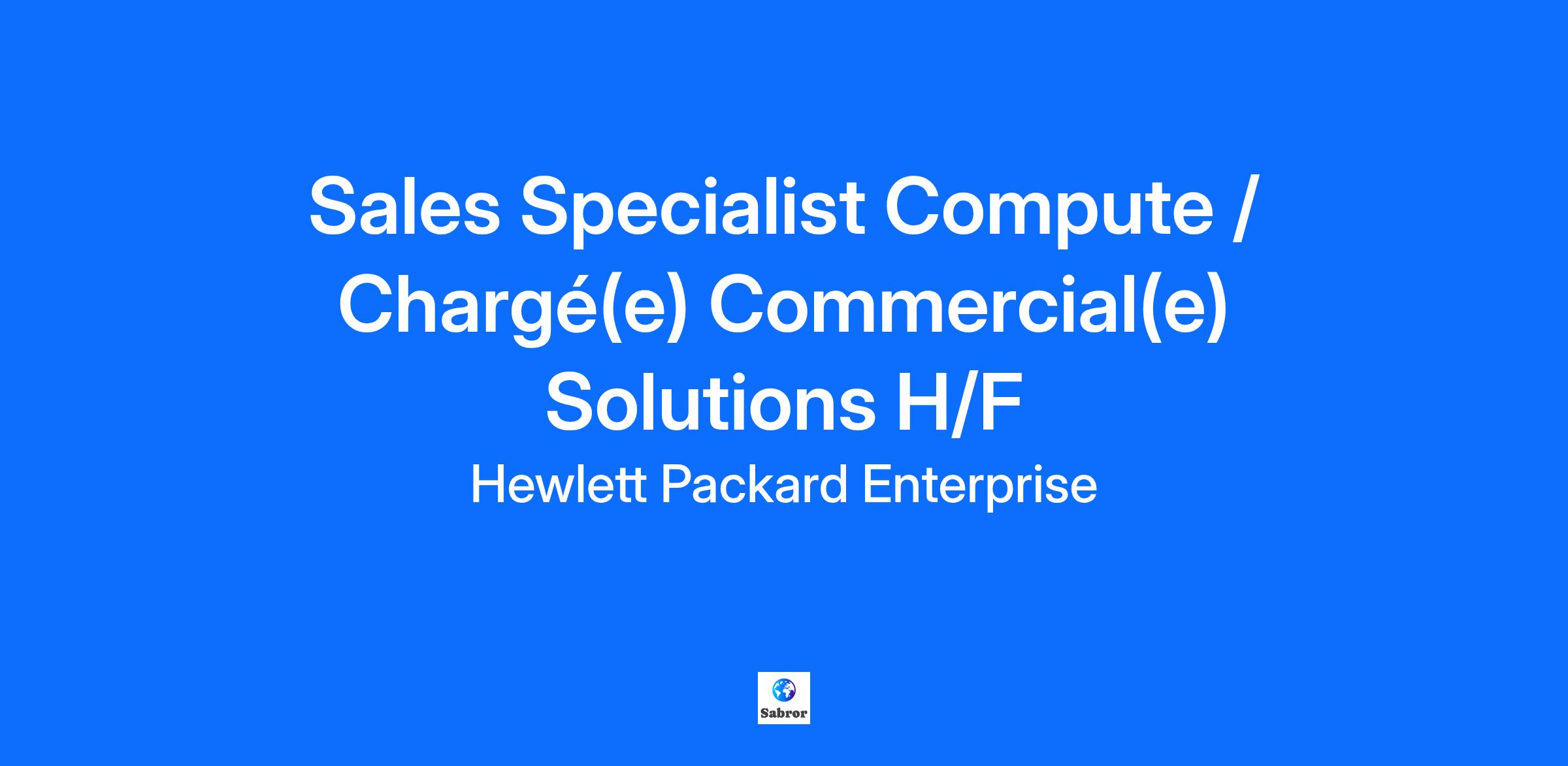 Sales Specialist Compute / Chargé(e) Commercial(e) Solutions H/F This role has been designed as ‘Hybrid’ with an expectation that you will work on average 2 days per week from an HPE office. Who We Are: Hewlett Packard Enterprise is the global edge-to-cloud company advancing the way people live and work. We help companies connect, protect, analyze, and act on their data and applications wherever they live, from edge to cloud, so they can turn insights into outcomes at the speed required to thrive in today’s complex world. Our culture thrives on finding new and better ways to accelerate what’s next. We know varied backgrounds are valued and succeed here. We have the flexibility to manage our work and personal needs. We make bold moves, together, and are a force for good. If you are looking to stretch and grow your career our culture will embrace you. Open up opportunities with HPE. Job Description: HPE Compute is looking for a Compute Sales Specialist HPE (Hewlett Packard Enterprise) is offering an exciting opportunity in a market that is moving faster than ever before. With HPE strong innovation culture, we develop our products and services to meet the demands of our customers in a world of digital transformation and AI. HPE is a proud leader in the server market and known as the most innovative vendor in the marketplace. Our culture is characterized by a no-nonsense culture with high drive and optimistic people; entrepreneurs who embrace the constant transformation that our industry is facing and looking for new market opportunities to keep and expand our leading market position. We are now looking for our next colleague. In the role as Compute Sales Specialist, you are responsible for leading the pursuit for Compute business. You are specialized on the compute products, solutions, services and software portfolio. You will collaborate with and support Account Managers, provide compute expertise within the sales team and to assigned customers. Drive proactive sales, use your specialized knowledge and skills to prospect, qualify, negotiate, and close opportunities. Main responsibilities Responsible for sales of Compute products and solutions in assigned accounts. Seeks out new opportunities through prospecting, industry networking and events. Create and drive Compute business pipeline and opportunities. Drives the Compute sales process, contributes to proposal development in collaboration with Presales, lead negotiations and deal closings. Negotiates and drives profitable deals to ensure successful closure and a high win rate. Works closely with the Account Manager, providing technical expertise and support. Effectively uses internal sales tools to maintain a healthy pipeline and the account plan in a timely fashion. Collaborates across the HPE teams to deliver a consistent approach to developing business, including account planning for end-to-end solutions. Directs and coordinates supporting sales activities related to pipeline hygiene through account managers, Presales, channel partners and other relevant stakeholders Focuses on and works with the channel to forge relationships, provide enablement of key technologies, and co-sell to end-users. Reinforces and articulates HPE's strategy and portfolio to partners and champions to uncover new business opportunities and contacts, including new logos. Effectively uses references to craft a story that makes complex technologies seem simple and understandable for the customers. Actively generates customer interest and understands the customer's buying trends. Links business and financial benefits with technology offerings. Illustrates the ROI & TCO advantages of HPE offerings for the customer's business. Contributes to development of quota objectives and future direction for Compute portfolio. Skills Requirements Hunter minset and experience in new logo acquisition Understanding Compute / Servers products, services and software offerings. Understand the competition and differentiate presenting HPE’s unique values. Understands the industry and market segment in which key accounts are situated and integrates this knowledge into consultative selling. Business planning skills, multi-dimensional. Experienced with working with channel partners and/or end-users About You University or bachelor’s degree preferred. Typically, 2+ years of Sales experience (in the Field Sales and/or Hunting Sales roles) Compute/server related sales experience preferred. Ability to interface with diverse business customers. Enjoy meeting and connecting with new people. Demonstrated achievement of progressively higher quota. Proactively striving for improvements and willingness to continues learning. Strong communication skills. Agile and adaptive to changes. Team player with ability to work independently Fluency in French and English is required. Additional Skills: Accountability, Accountability, Active Learning, Active Listening, Assertiveness, Bias, Building Rapport, Buyer Personas, Coaching, Complex Sales, Creativity, Critical Thinking, Cross-Functional Teamwork, Customer Experience Strategy, Customer Interactions, Design Thinking, Empathy, Financial Acumen, Follow-Through, Growth Mindset, Identifying Sales Opportunities, Industry Knowledge, Intellectual Curiosity (Inactive), Long Term Planning, Managing Ambiguity {+ 6 more} What We Can Offer You: Health & Wellbeing We strive to provide our team members and their loved ones with a comprehensive suite of benefits that supports their physical, financial and emotional wellbeing. Personal & Professional Development We also invest in your career because the better you are, the better we all are. We have specific programs catered to helping you reach any career goals you have — whether you want to become a knowledge expert in your field or apply your skills to another division. Unconditional Inclusion We are unconditionally inclusive in the way we work and celebrate individual uniqueness. We know varied backgro
