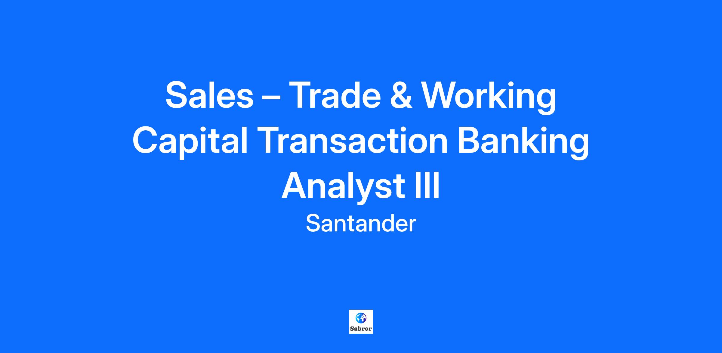 Sales – Trade & Working Capital Transaction Banking Analyst III Country: France Introduction to Santander & GTB Santander is one of the world’s largest banking groups, ranked 5th by net operating profit on a worldwide basis. Santander is uniquely positioned in international banking, with a sound base of retail, commercial and investment banking businesses and a high geographical diversity with operations in leading markets including Brazil, Spain, the United Kingdom, France, Mexico, Portugal, Chile, Argentina, the United States, Poland and Germany as well as an extensive network. With over 178 million customers, more than 200,000 employees and a large international banking network of almost 14,000 branches, Banco Santander is the biggest bank by net result and market capitalization in the Eurozone. Santander’s Corporate & Investment Banking business is supported by more than 2,600 professionals spread across 20 countries that provide sound expertise and extensive knowledge in markets, funding, investments, and hedging. The Global Transaction Banking (GTB) division offers financing solutions to large corporates, financial institutions & sponsors through a wide variety of products in Trade Finance, Export Finance, Supply Chain Finance and Cash management. The GTB team in Paris holds a leading European position in the markets it covers, providing financial services to listed companies and institutions in France, Benelux & Ireland. The Trade & Working Capital Solutions (T&WCS) team is part of the GTB division. The Trade & Working Capital Solutions team provides clients with tailored services and solutions to mitigate risk in trade transactions, propose financing and optimize the working capital of corporate clients. The portfolio of products is diverse and includes Receivables Financing, Supply Chain Finance, Letter of Credits, Guarantees, Inventory Finance and Structured Trade solutions. GTB Analyst - Trade & Working Capital Solutions for Corporate clients in France, Benelux & Ireland Responsibilities: ▪ Reports to the Head of the T&WCS team in Paris. As a GTB Analyst, you will support the senior T&WC officers on developing the T&WC relationship with a portfolio of blue-chip clients in a defined industry. ▪ Proactively support senior T&WC officers to identify and originate trade finance solutions (structured trade, guarantees, letters of credit, prepayments, supply chain finance, inventory solutions, receivables discounting). ▪ Along with the senior T&WC officers, prepare presentation decks, propose acceptable financing structures, prepare term sheets and negotiate terms with clients. Work with legal counsel on documentation. Coordinate with other teams (Products, Middle Office, Risk, Methodology, Legal, Private Debt Mobilization, Syndications, Correspondent banks, Compliance) to insure smooth handling of transactions. ▪ Oversee the internal and external evaluation and follow-up of existing programs to ensure their effective functioning and to enhance revenue generation and profitability. ▪ Identify opportunities for expansion of existing programs within our clients or across their subsidiaries and entities in France, Benelux, Ireland, and other international countries within the Santander footprint. ▪ Support in the cross-sell of Export Finance, Cash Management, Markets or other CIB products whenever possible. ▪ Develop and maintain along with the senior T&WC officers dynamic calling program / networking. ▪ Contribute to product development initiatives, identification of incremental sales opportunities, pitches and sectorial research Skills needed: - Commercial capacity and drive are a must, the same as excellent time management skills and adaptability to work under pressure with multiple priorities - Continuous improvement & innovation mind set - Action oriented individual with the willingness to take responsibility and initiative, fast learning and adaptable, curiosity to take an interest in different sectors and develop expertise - Aptitude for customer service and proactive approach to customer relations - Strong commercial/negotiation & origination skills - Self-starter, entrepreneurial, sales oriented - Strong problem-solving skills and creativity - Previous experience in T&WC products is appreciated in previous jobs - Enthusiastic, self-motivated, ability to work independently as well as within a multi-cultural and cross-functional team - Ability to work in a high paced environment - Excellent written and verbal communication skills in both French and English (Spanish would be appreciated but is not required) - Proficiency in Excel, Power Point, Power BI and data management and visualization tools - Ability to manage multiple tasks and prioritize workload to meet deadlines - Team spirit is a must The Santander Effect Our work touches 140 million lives every day. How? By always innovating, sharing our experiences, questioning how we do things and adapting to new challenges. As we keep reinventing ourselves for the digital age, you’ll find that with us, even your smallest action will have a massive impact. That’s the Santander Effect.