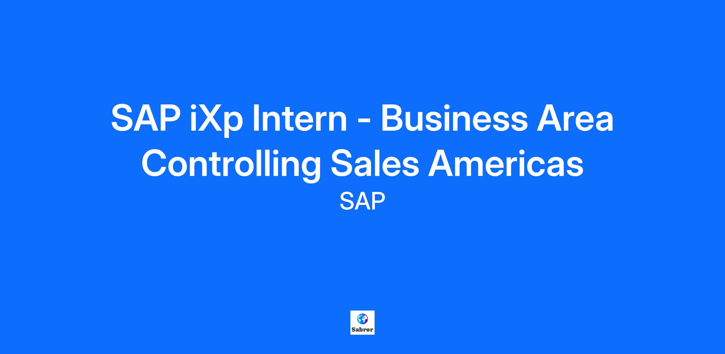 Position title: SAP iXp Intern - Business Area Controlling Sales Americas