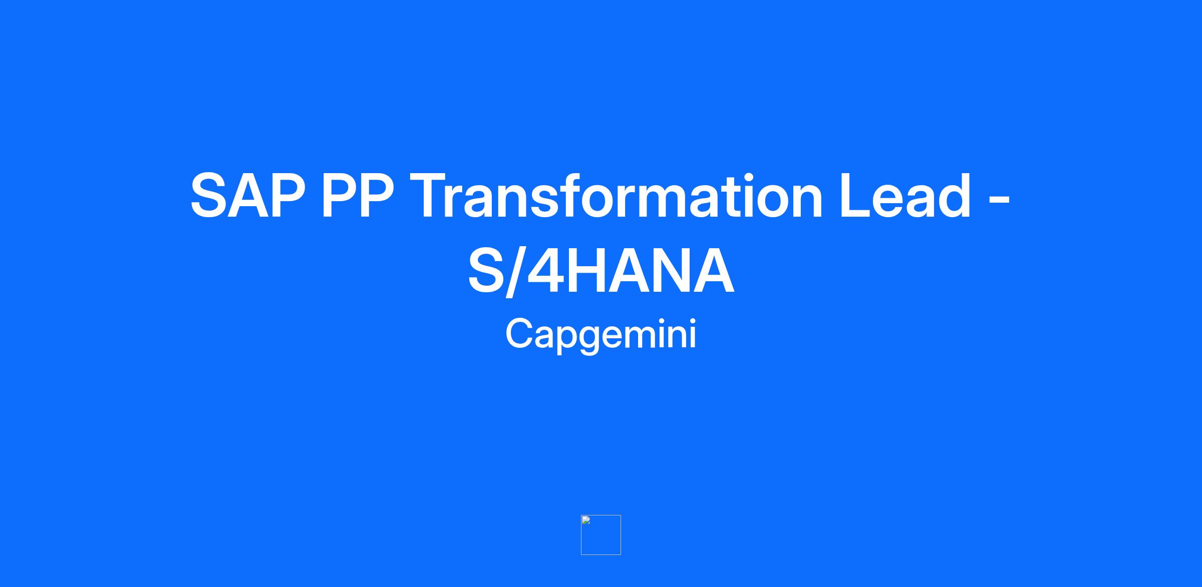 SAP PP Transformation Lead - S/4HANA