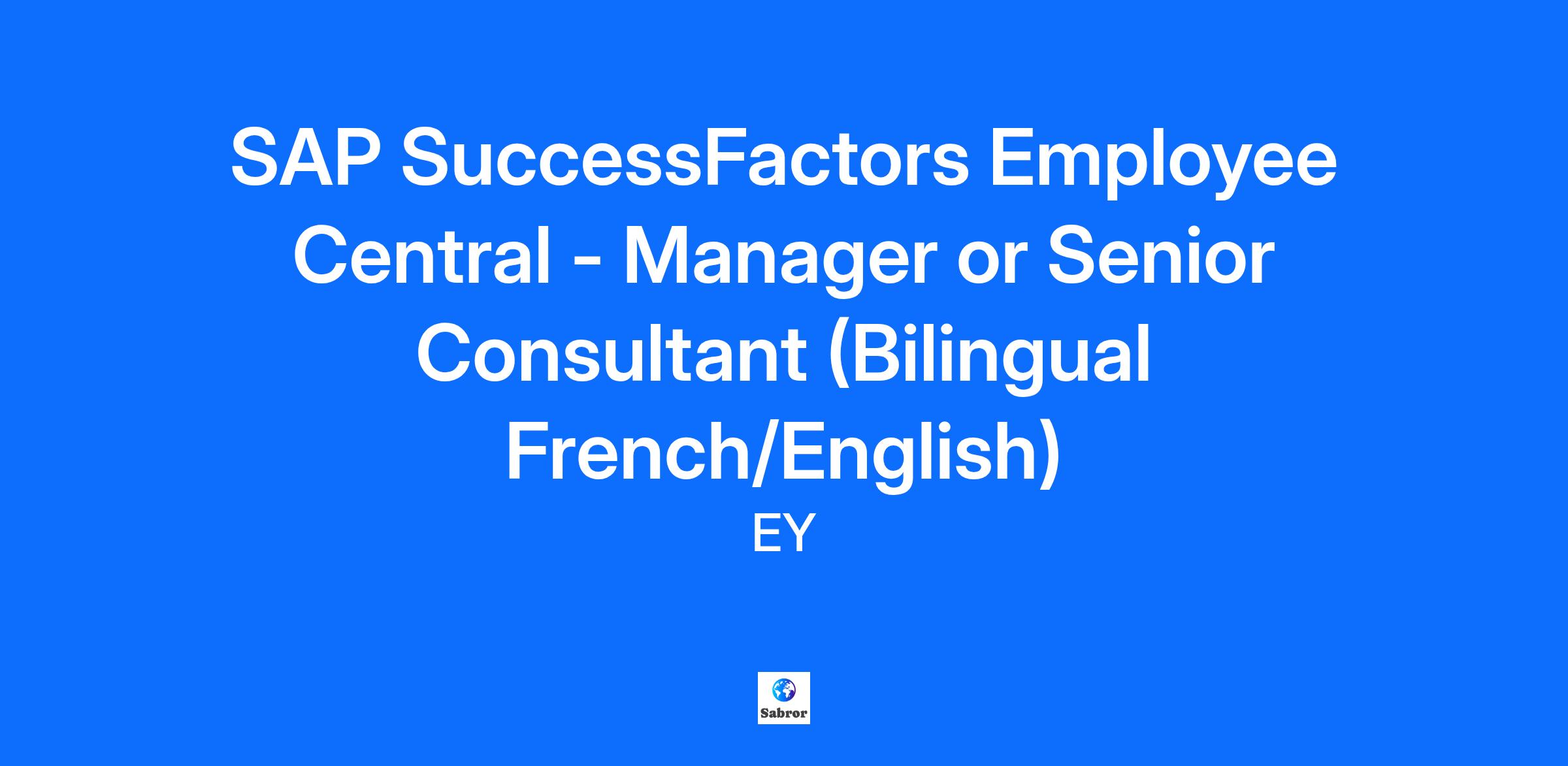 At EY, we’re all in to shape your future with confidence. We’ll help you succeed in a globally connected powerhouse of diverse teams and take your career wherever you want it to go. Join EY and help to build a better working world. The opportunity We are looking for a bilingual (French/English) SAP SuccessFactors Employee Central Manager or Senior Consultant to join our HR Technology practice. This role is designed for someone who can lead complex HRIS implementations, influence key stakeholders, and deliver high-impact solutions. You will guide clients through the full lifecycle of SAP SuccessFactors Employee Central implementations, from strategy to post-go-live optimization. This role sits at the intersection of technology, people, and business. You’ll be helping clients modernize their HR operations with confidence, deep domain expertise, and a collaborative mindset. Your key responsibilities Client Leadership & Strategy Act as a trusted advisor to HR leaders, helping shape transformation roadmaps aligned with business goals. Facilitate bilingual client workshops to translate strategic objectives into SAP SuccessFactors Employee Central solutions. Guide clients through decisions around process optimization, data governance, and HR architecture. Implementation and Integration Lead the delivery of SAP SuccessFactors Employee Central implementations across sectors and geographies. Oversee configuration, data migration, testing, and deployment activities. Ensure seamless integration with other HR systems and third-party applications. Solution Ownership & Innovation Maintain ownership of solution integrity across configuration, integration, data strategy, and reporting. Introduce leading practices and innovations from the SAP ecosystem. Champion continuous improvement in system design, user experience, and analytics. Program Delivery & Coordination Drive coordination across cross-functional teams to align delivery with organizational goals. Manage project timelines, risks, and stakeholder communications. People Leadership Lead and mentor delivery teams across onshore/offshore models. Foster growth and accountability through coaching and knowledge-sharing. Change Enablement & Adoption Collaborate with change management teams to ensure successful adoption. Lead co-creation sessions to design user-centric solutions. Skills and attributes for success Strong understanding of HR processes and best practices. Deep expertise in SAP SuccessFactors Employee Central. Experience in leading and mentoring teams. Proficiency in data migration, system configuration, and integration. Excellent project management and problem-solving skills. Bilingual fluency in French and English (spoken and written). To qualify for the role you must have Bachelor’s or Master’s degree in Computer Science, Information Technology, HR, or Business Administration. Minimum 8 years of experience in HR technology consulting, with a focus on SAP SuccessFactors Employee Central. Proven ability to lead end-to-end implementations. Strong executive presence and facilitation skills. Experience managing cross-functional teams in complex environments. Ideally, you’ll also have SAP SuccessFactors Employee Central certification. Experience with other SAP SuccessFactors modules (Compensation, Talent, Learning, Recruiting). Familiarity with SAP HCM or WorkForce Software. What we look for You lead with curiosity, structure, and confidence—even when the path isn’t clear. Clients ask for you by name. Your teams grow stronger under your leadership. You elevate delivery by connecting business strategy with tech decisions—and telling that story well. Diversity and Inclusion at EY Diversity and inclusiveness are at the heart of who we are and how we work. We’re committed to fostering an environment where differences are valued, policies and practices are equitable, and our people feel a sense of belonging. We embrace diversity and are committed to combating systemic racism, advancing gender equity and women in leadership, advocating for the 2SLGBTQIA+ community, promoting our neuroinclusion and accessibility initiatives, and are dedicated to amplifying the voices of Indigenous peoples (First Nations, Inuit, and Métis) nationally as we strive towards reconciliation. Our diverse experiences, abilities, backgrounds, and perspectives make our people unique and help guide us. Because when people feel free to be their authentic selves at work, they bring their best and are empowered to build a better working world. EY | Building a better working world EY is building a better working world by creating new value for clients, people, society and the planet, while building trust in capital markets. Enabled by data, AI and advanced technology, EY teams help clients shape the future with confidence and develop answers for the most pressing issues of today and tomorrow. EY teams work across a full spectrum of services in assurance, consulting, tax, strategy and transactions. Fueled by sector insights, a globally connected, multi-disciplinary network and diverse ecosystem partners, EY teams can provide services in more than 150 countries and territories.