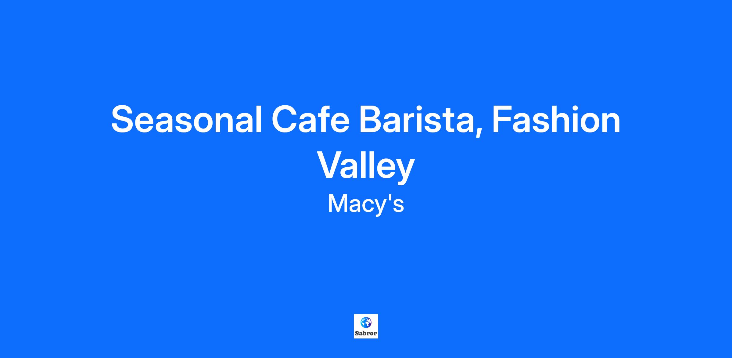 Seasonal Cafe Barista, Fashion Valley