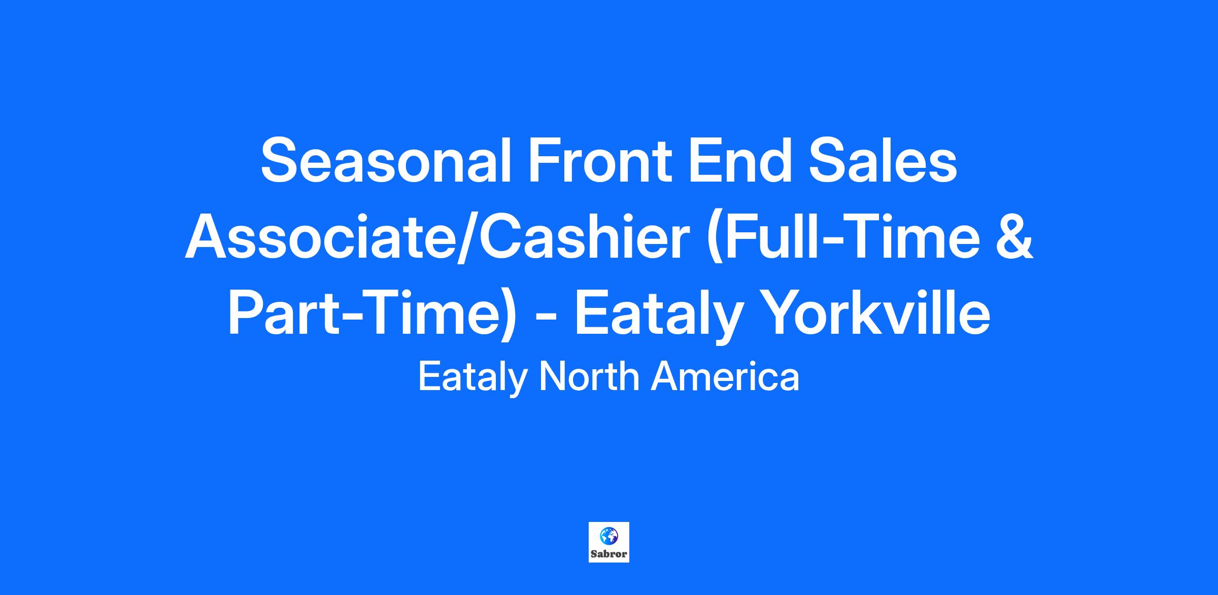 Company Description Eataly is the world’s largest artisanal Italian food and beverage marketplace! Eataly is not a chain; each Eataly is different, with its own character and own theme – but all with the same aim... for our guests to: EAT authentic Italian food at our restaurants, cafés and to-go counters SHOP a selection of high-quality Italian, local and homemade products LEARN through our classes and our team’s product knowledge Job Description This is a Seasonal role, with an expected end date of 01/04/2026. A Front End Sales Associate/Cashier handles payments and ensures accurate accounting of all transactions, collections and disbursements. Reports to the Front End Manager. Collects cash, checks or charge payments from guests and provides change and charge vouchers if appropriate Verifies accuracy of cash bank by counting cash, checks and charge payments at end of shift Obtains and reviews information regarding price changes Verifies employee discounts, returns, exchanges and voids with the assistance of the manager or shift lead Returns carts and baskets to their central distribution areas, takes back go-backs/damages, fixes displays, helps restock, and supports team members Performs other duties as required or assigned Qualifications Basic math and cash-handling skills Basic knowledge of the functions of cash registers High school graduate or equivalent preferred Job Requirements Ability to remain stationary for periods of up to 8 hours Ability to bend and stoop on occasion Ability to escort guests to other parts of the facility as circumstances dictate Additional Information Benefits and Perks Medical, Dental, Vision Insurance Paid Time Off Paid Parental Leave RRSP Bonus program Free family meal daily Discounts at Eataly Classes on products and Italian cuisine Referral bonus program and more! Eataly is committed to creating and maintaining a workplace that is free from harassment and discrimination under the Ontario Human Rights Code. The Company’s policy is not to discriminate against any applicant or employee on the basis of a prohibited ground enumerated by the Ontario Human Rights Code (e.g. race, colour, creed (religion), place of origin, sex (including pregnancy, gender identity), sexual orientation, age, family status, or disability). Eataly also prohibits harassment of applicants and employees based on any of these prohibited grounds. Eataly welcomes and encourages applications from people with disabilities. Accommodations are available on request for candidates taking part in all aspects of the selection process. Please advise Human Resources if you require accommodation. Further, it is Eataly’s policy to comply with all applicable provincial and federal laws regarding background and criminal record checks in making hiring decisions.