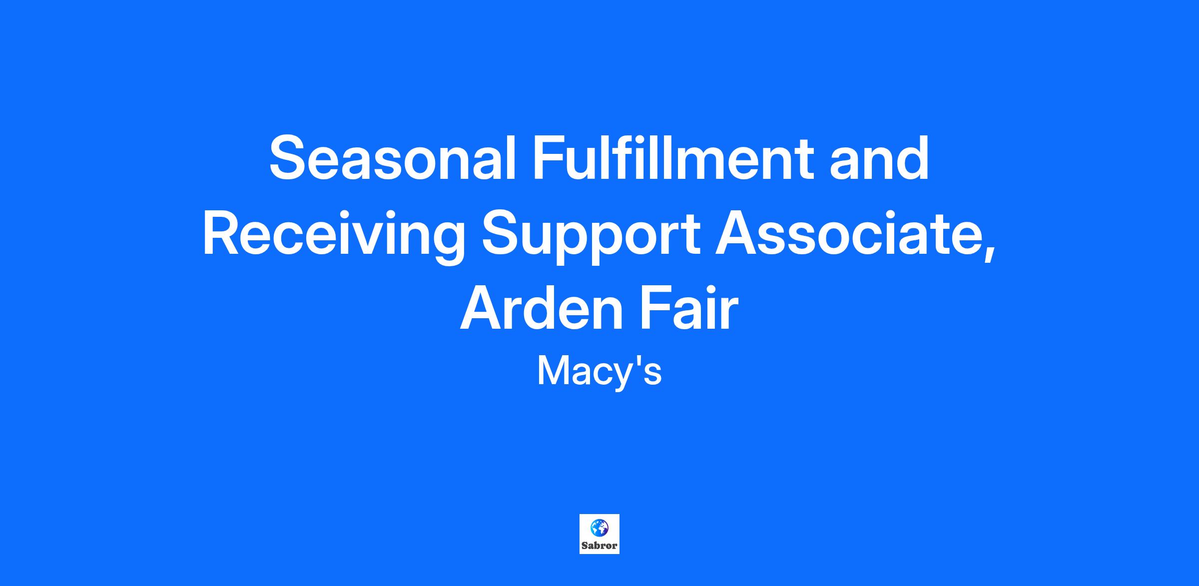 Seasonal Fulfillment and Receiving Support Associate, Arden Fair