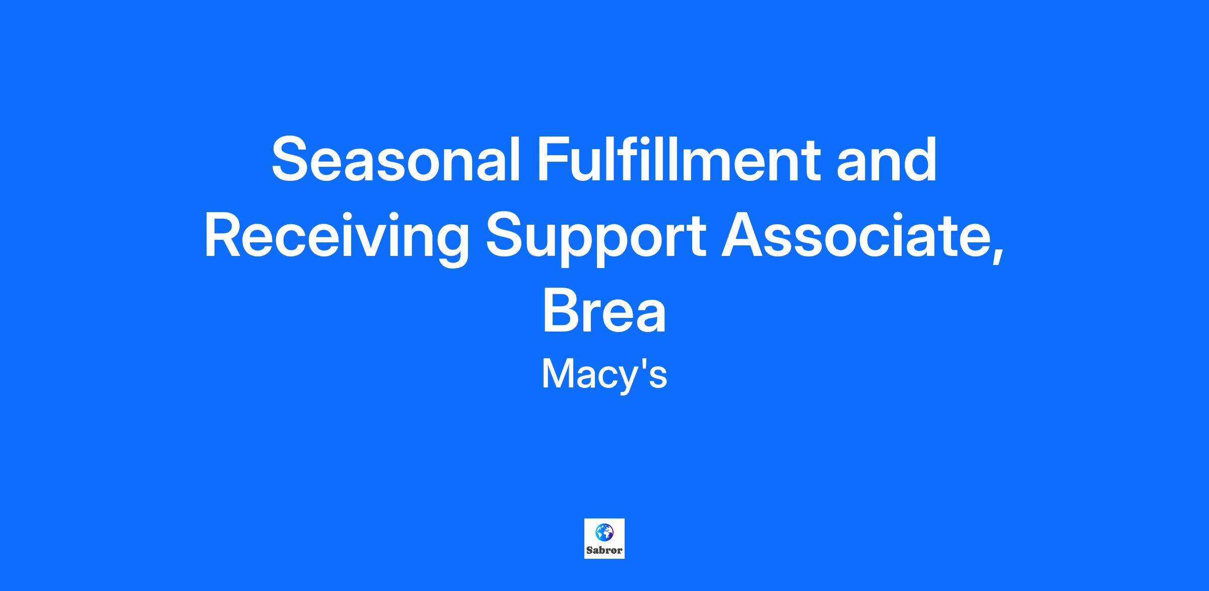 Seasonal Fulfillment and Receiving Support Associate, Brea