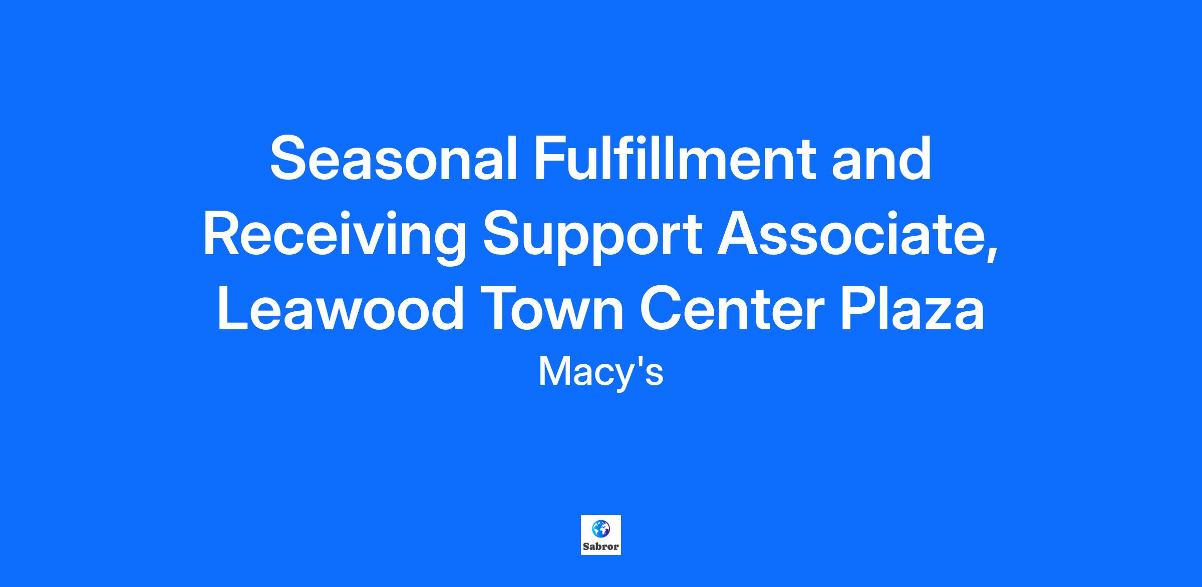 Seasonal Fulfillment and Receiving Support Associate, Leawood Town Center Plaza