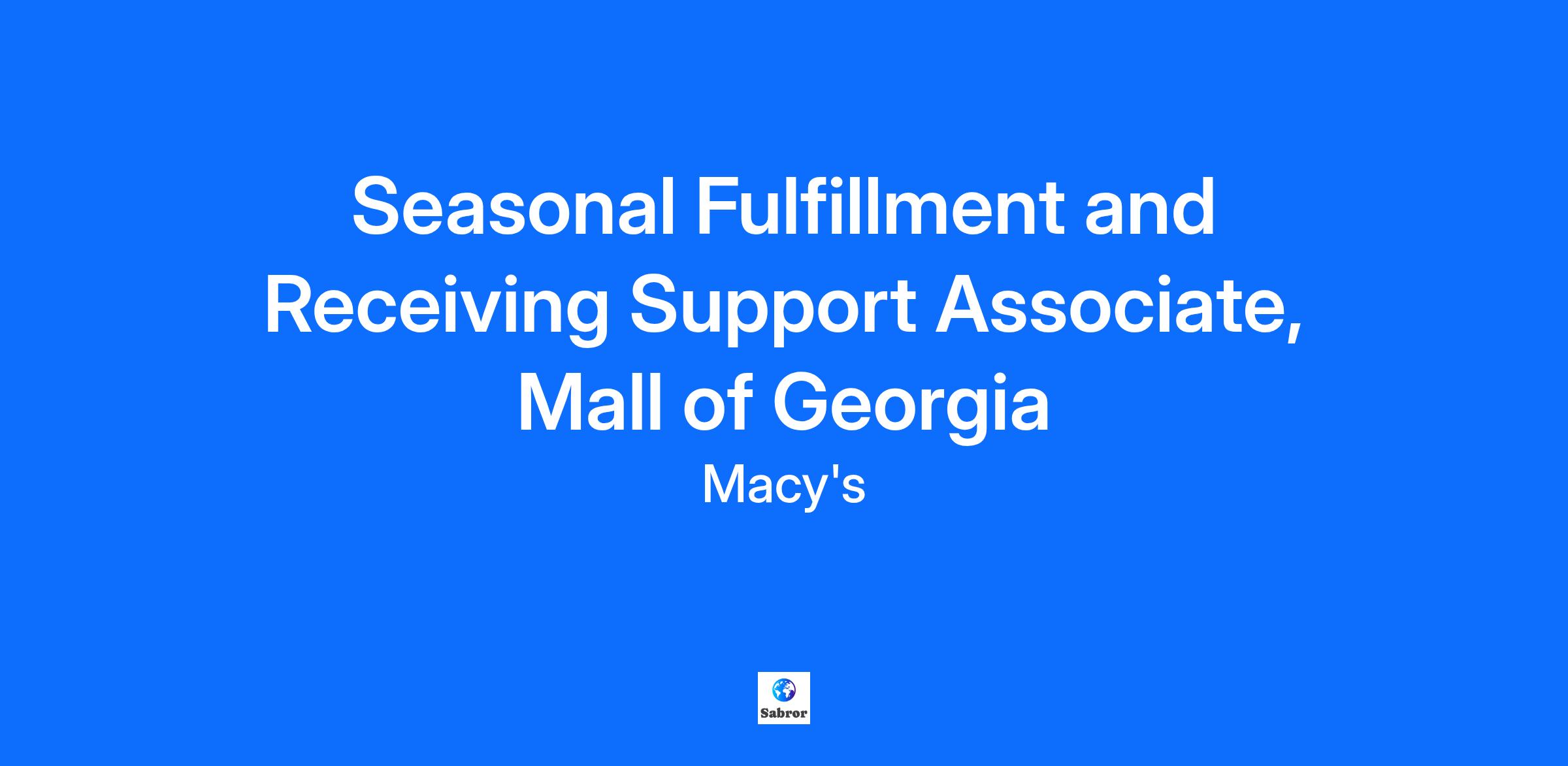Seasonal Fulfillment and Receiving Support Associate, Mall of Georgia
