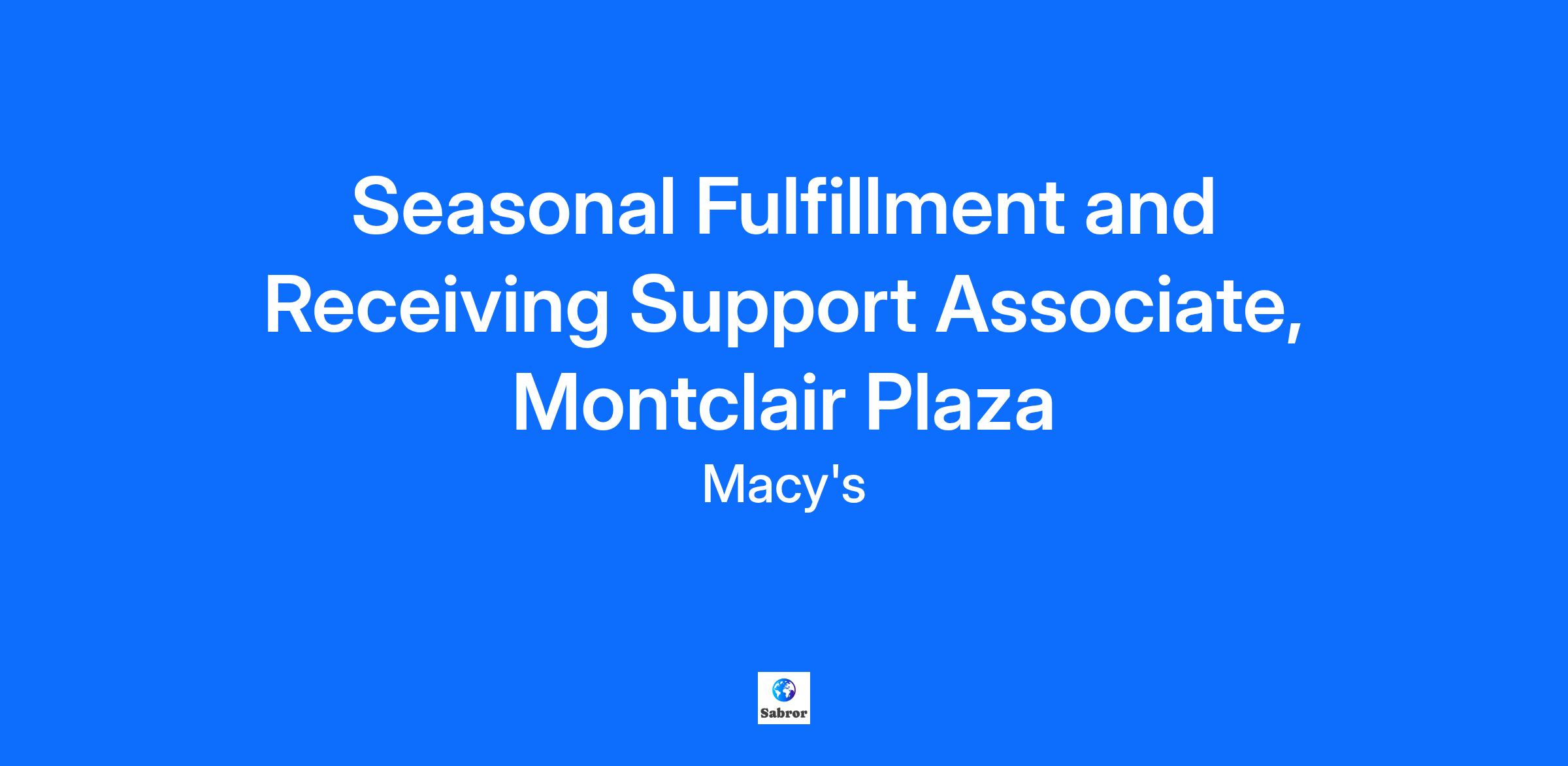 Seasonal Fulfillment and Receiving Support Associate, Montclair Plaza