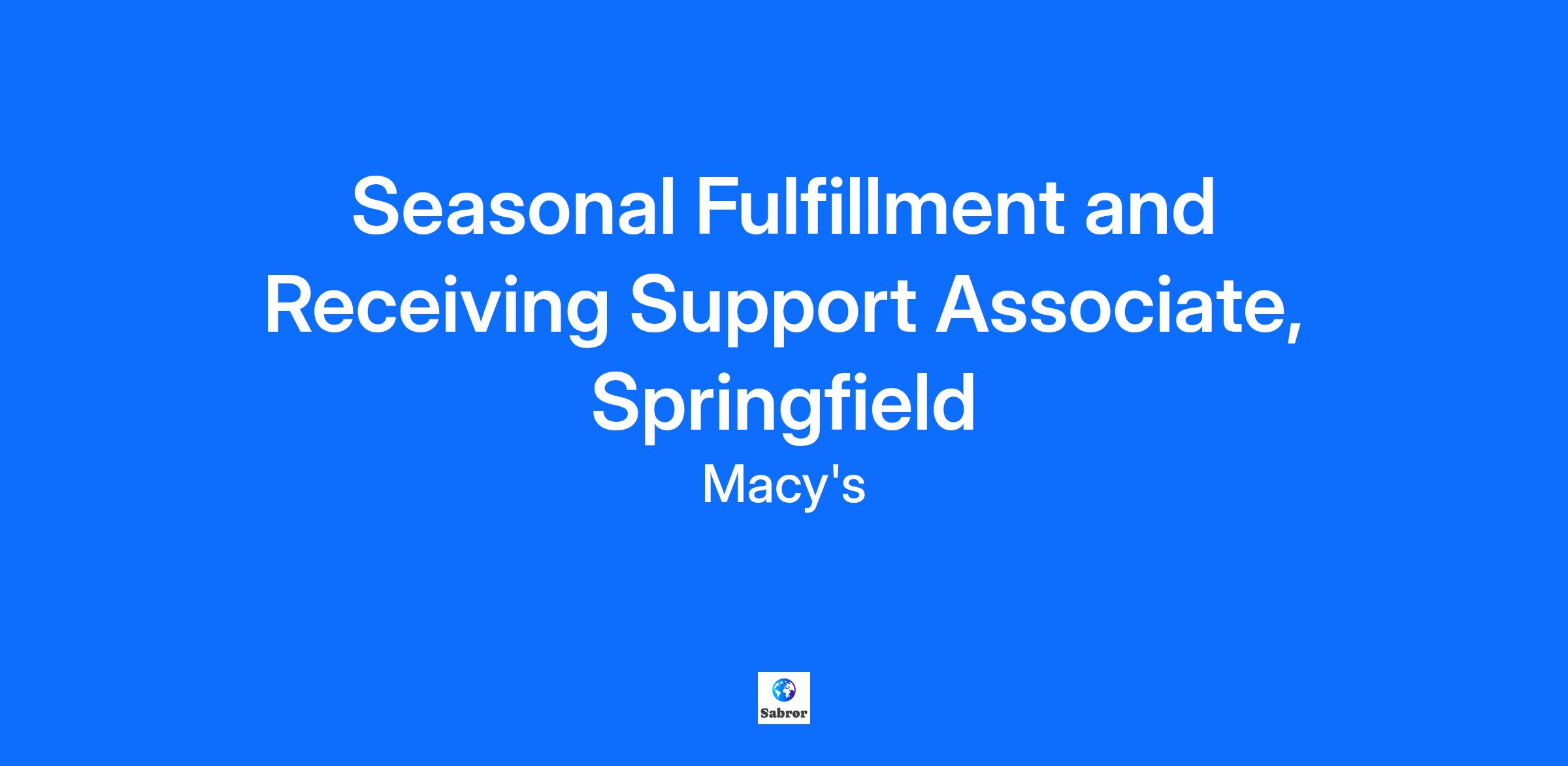 Seasonal Fulfillment and Receiving Support Associate, Springfield
