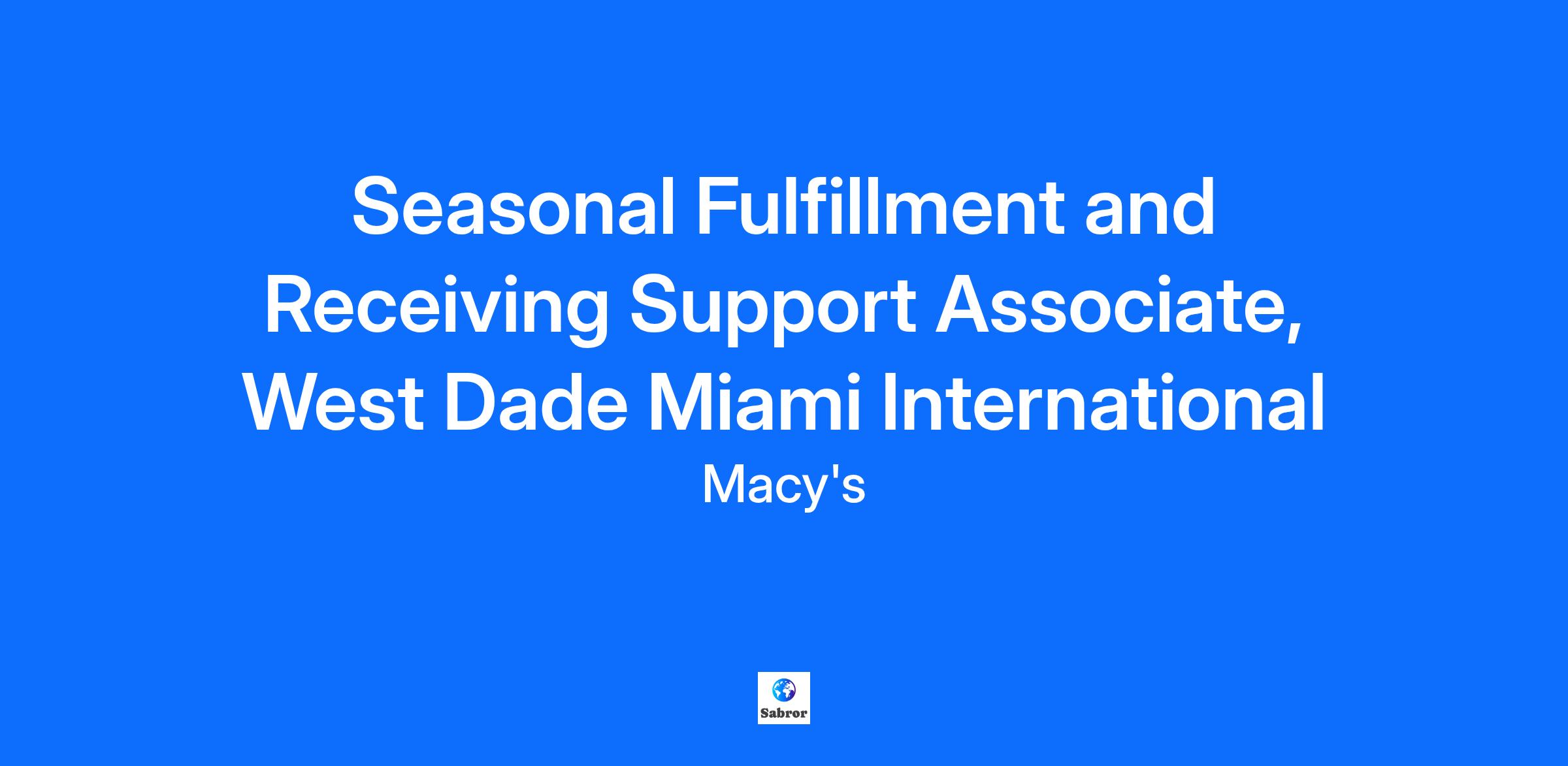 Seasonal Fulfillment and Receiving Support Associate, West Dade Miami International