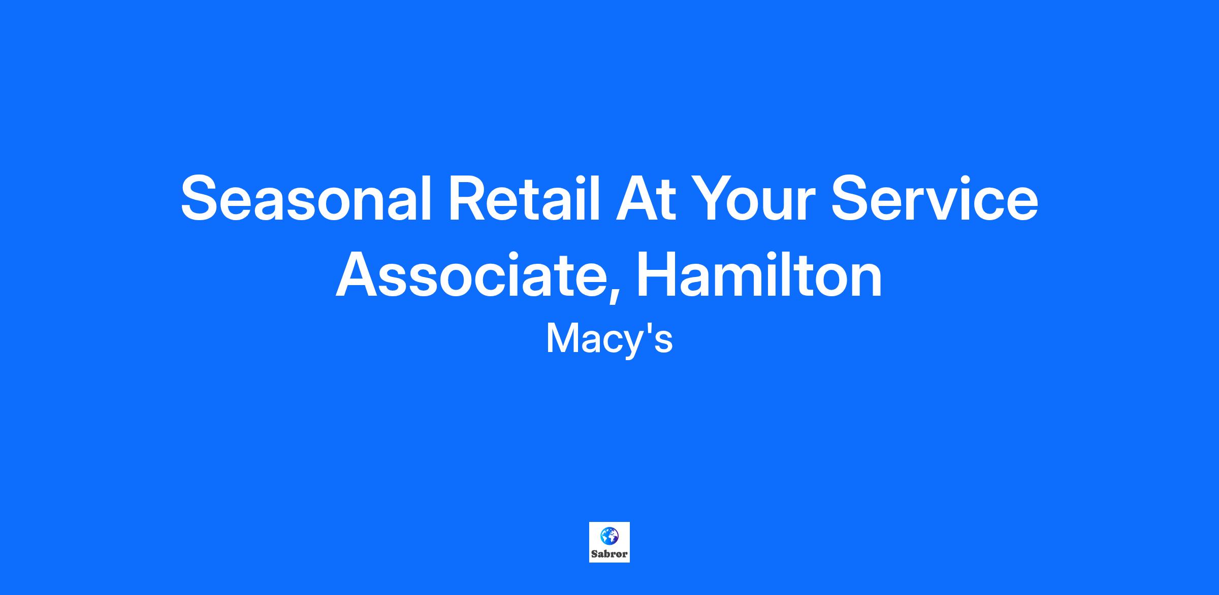 Seasonal Retail At Your Service Associate, Hamilton