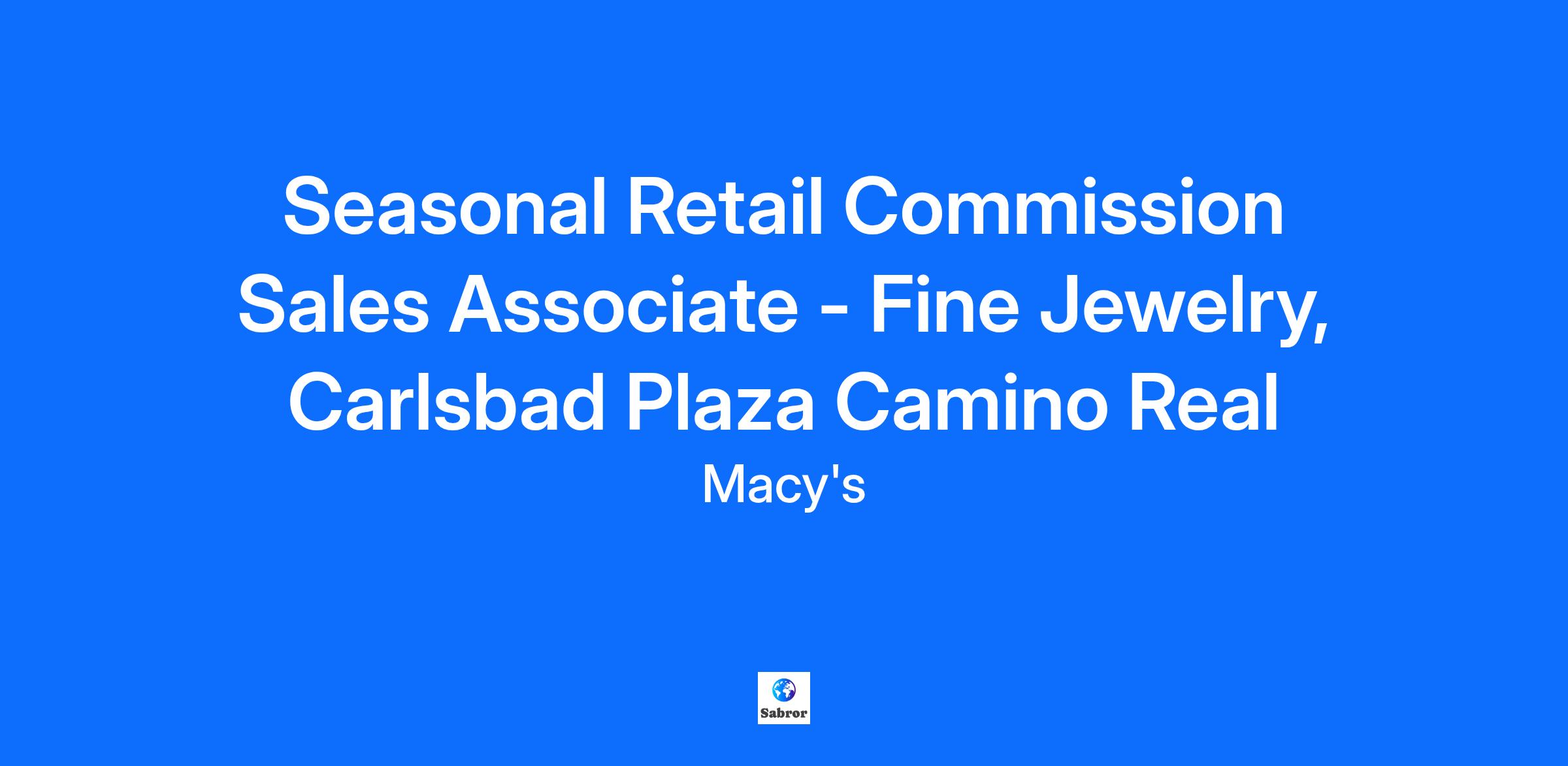 Seasonal Retail Commission Sales Associate - Fine Jewelry, Carlsbad Plaza Camino Real