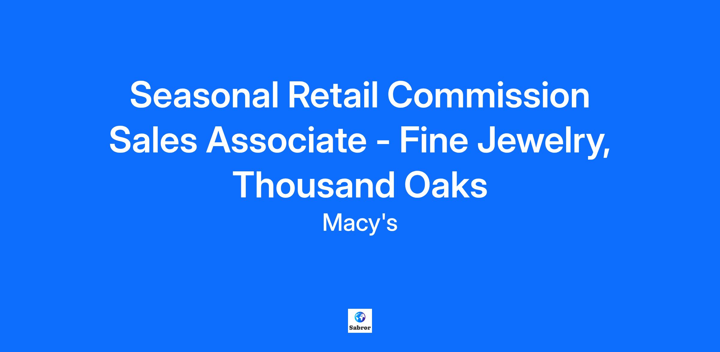 Seasonal Retail Commission Sales Associate - Fine Jewelry, Thousand Oaks