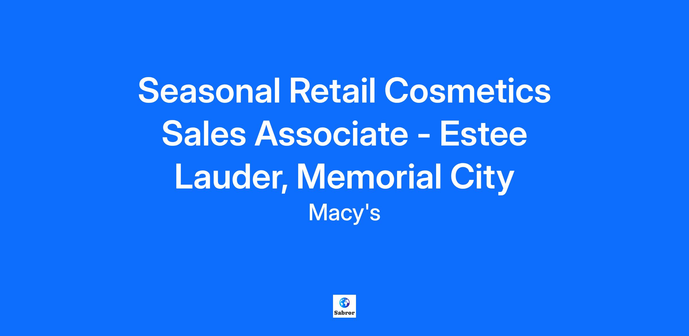 Seasonal Retail Cosmetics Sales Associate - Estee Lauder, Memorial City