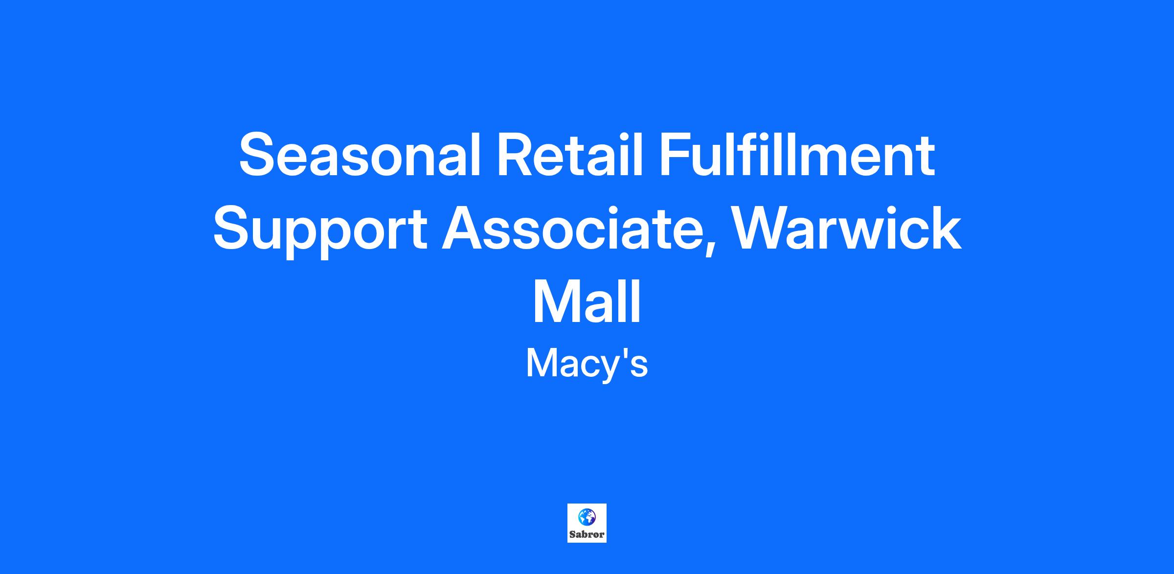 Seasonal Retail Fulfillment Support Associate, Warwick Mall